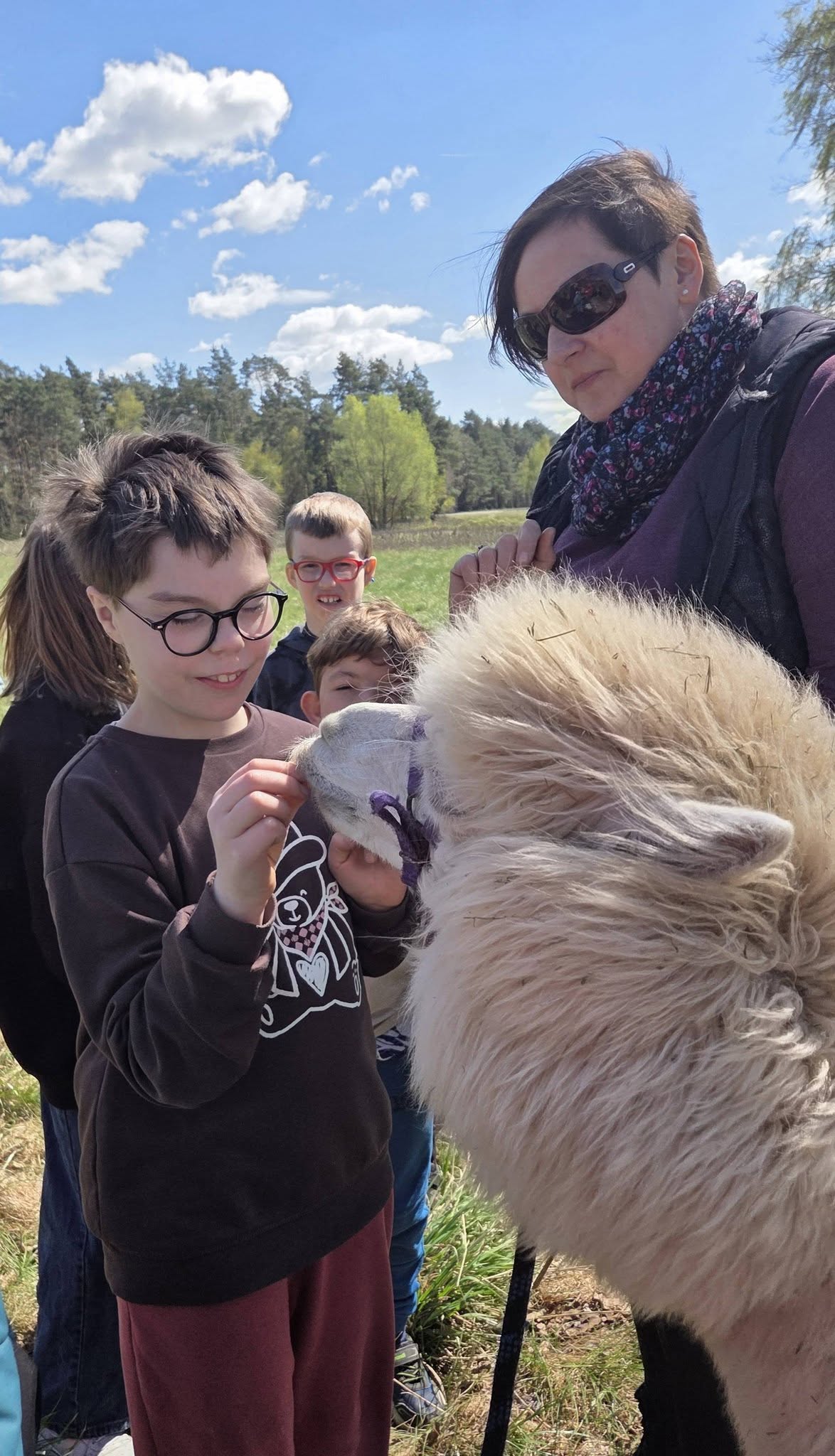 Wycieczka uczniów do miejsca zwanego Alpaki Cudaki w Siedlątkowie okazała się strzałem w dziesiątkę. Bliskie spotkania z alpakami i lamami, karmienie zwierząt, a do tego kury, króliki i mnóstwo innych futrzastych (i nie tylko!) zwierzaków – oto atrakcje, które czekały na naszych podopiecznych. Oprócz tego był spacer, a potem świetna zabawa na sianie.
