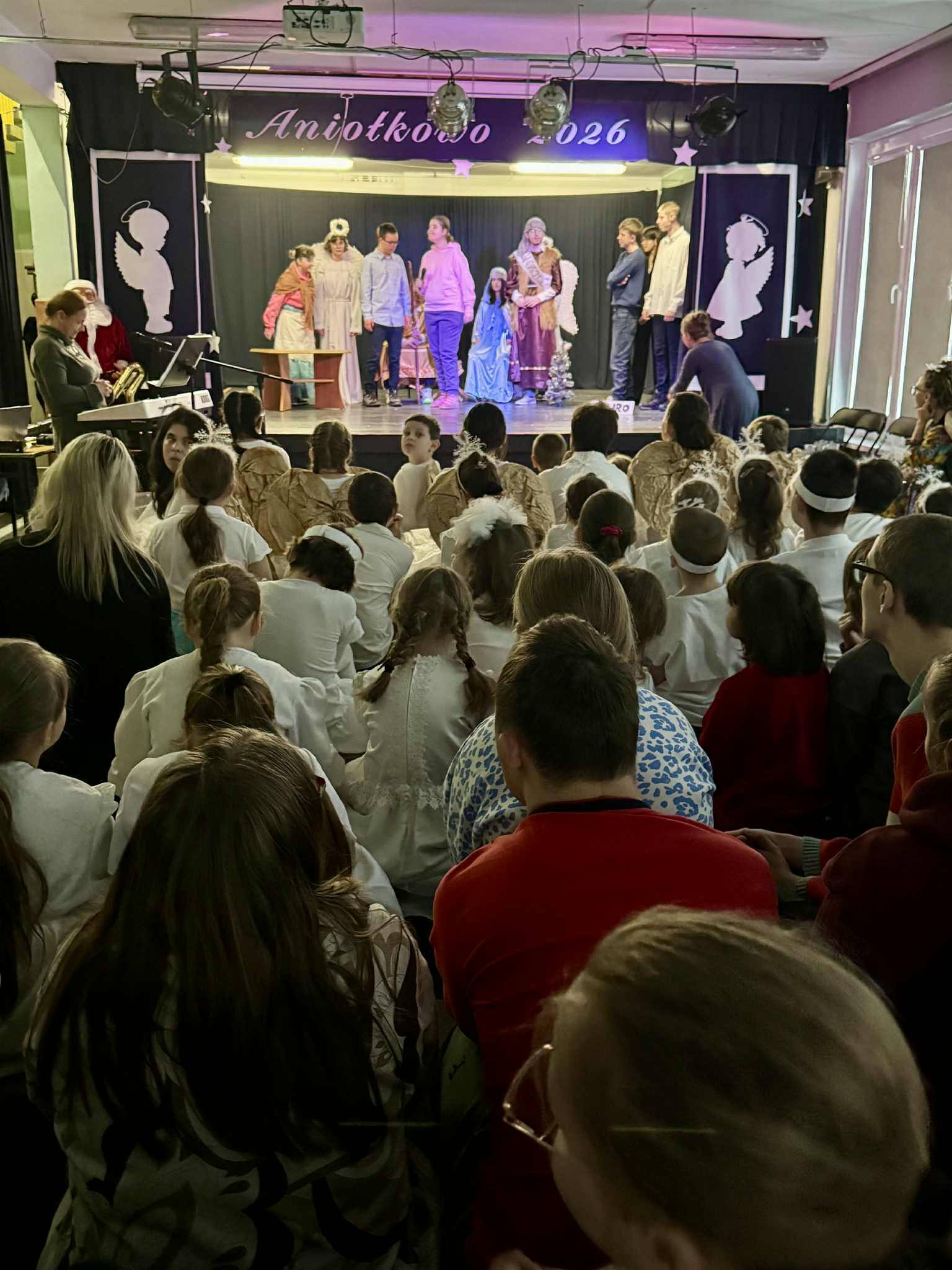 Niby już po świętach, a w naszej szkole wciąż panuje magiczna atmosfera Bożego Narodzenia. A to za sprawą Aniołkowa – Festiwalu Twórczości Radosnej – corocznego przeglądu szkolnych przedstawień o tematyce świątecznej.