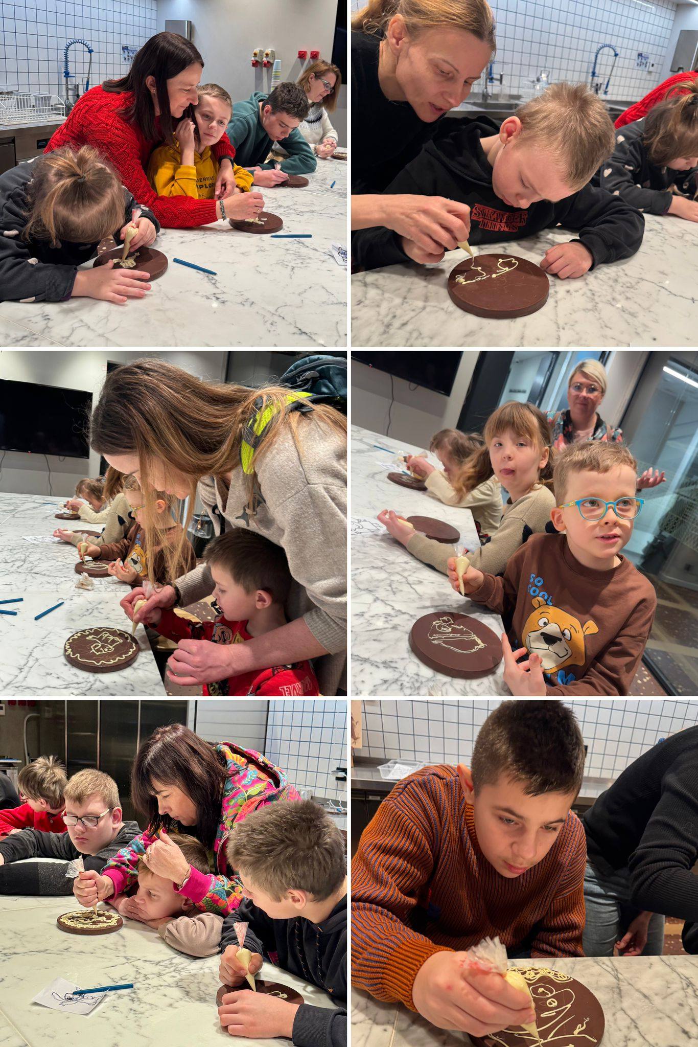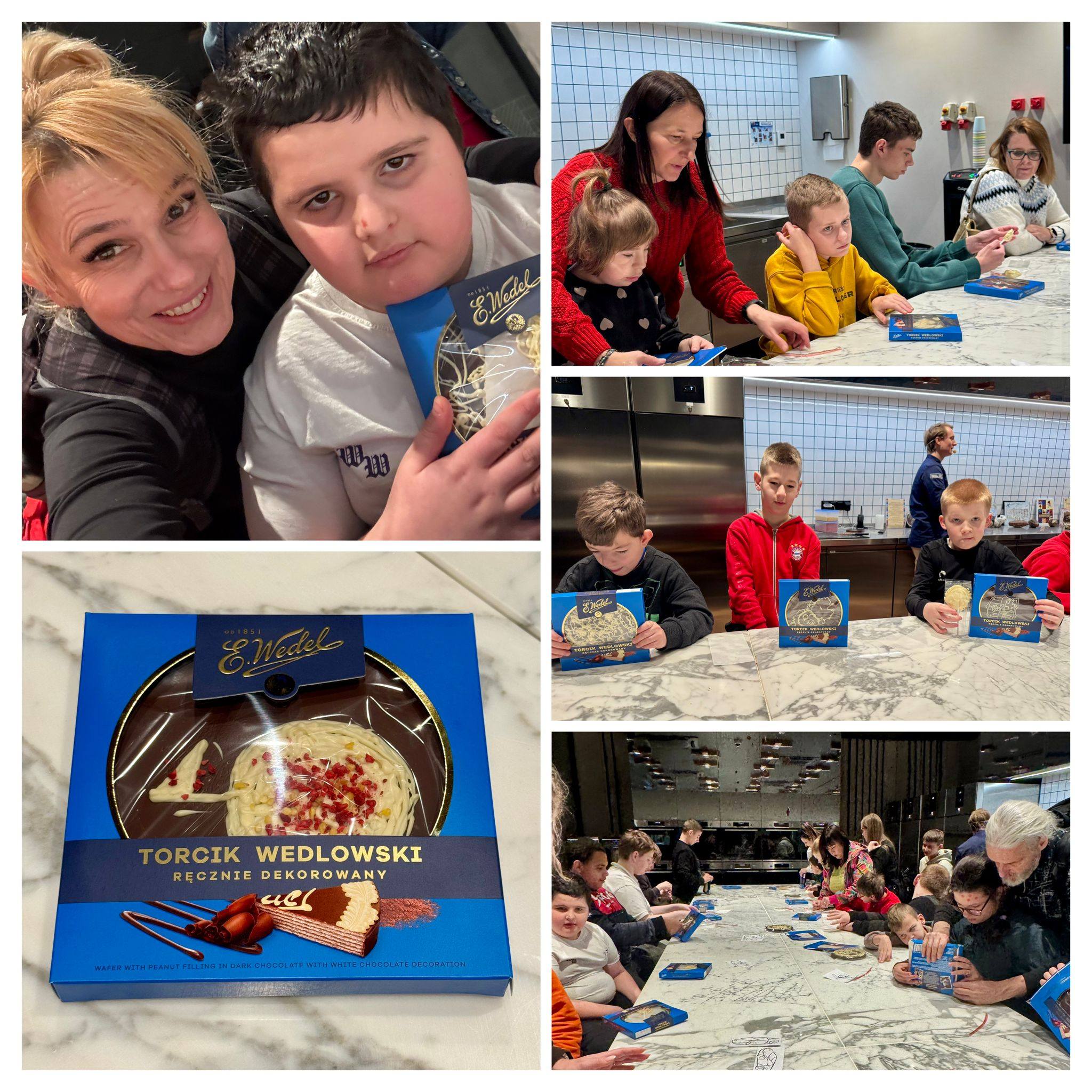 Emocje zaczęły się już od samego rana, kiedy nasi podopieczni wsiedli do pociągu. Dla niektórych była to bowiem pierwsza podróż koleją w życiu! Na miejscu ekscytacja i radość wciąż towarzyszyły uczniom, którzy od razu zanurzyli się w pysznym świecie czekolady. Dekorowali czekoladowe torciki, poznawali tajniki tworzenia słodkości, a podczas zwiedzania Muzeum Wedla odkrywali mnóstwo ciekawostek z historii tej wyjątkowej marki.