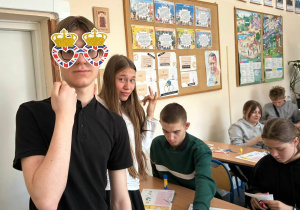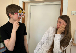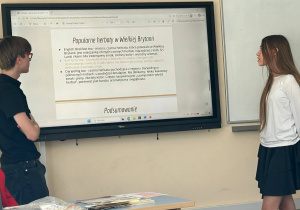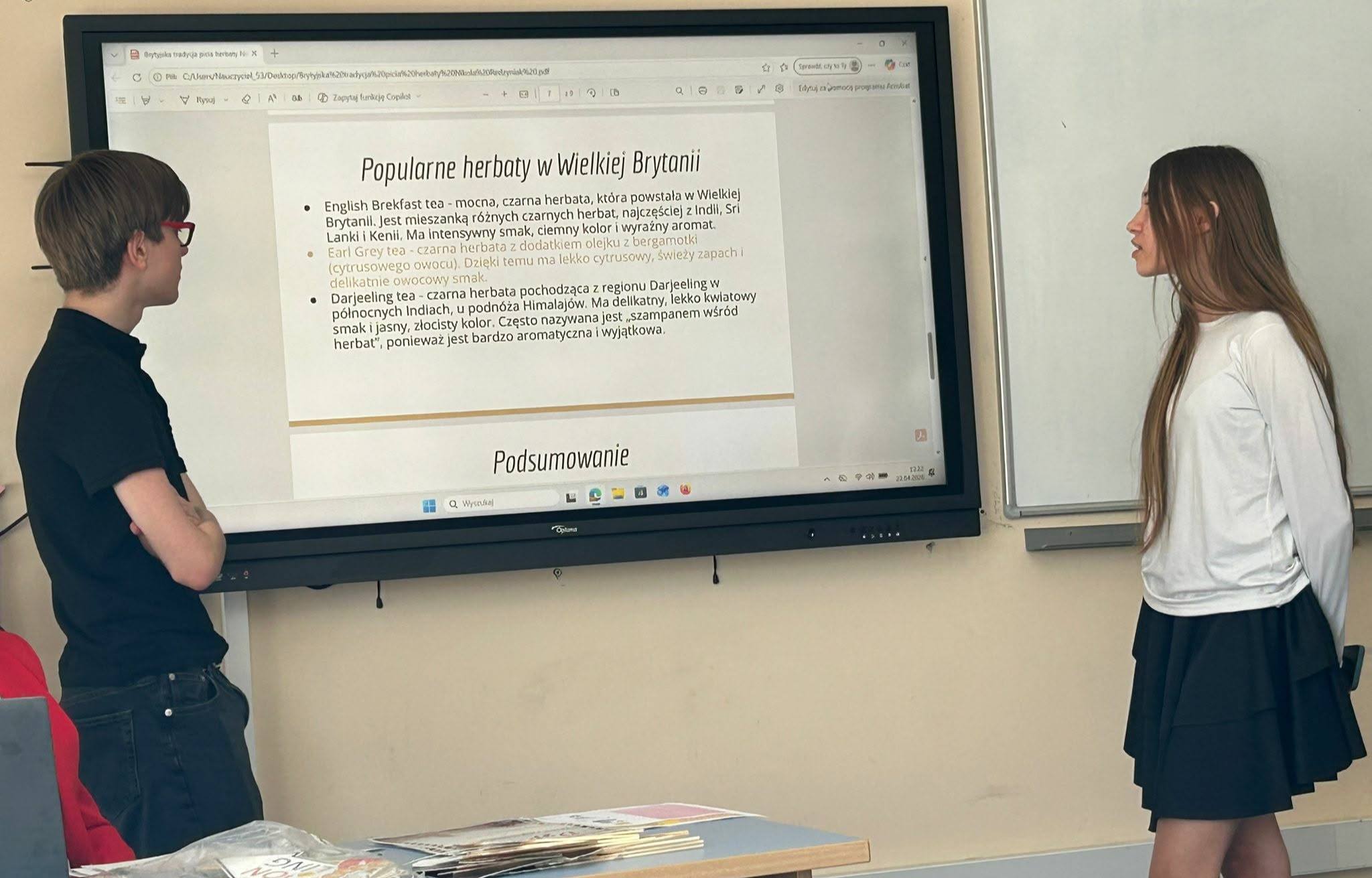 Nikola i Gracjan z klasy VIII zaprezentowali tradycję picia herbaty, a na zakończenie wspólnie