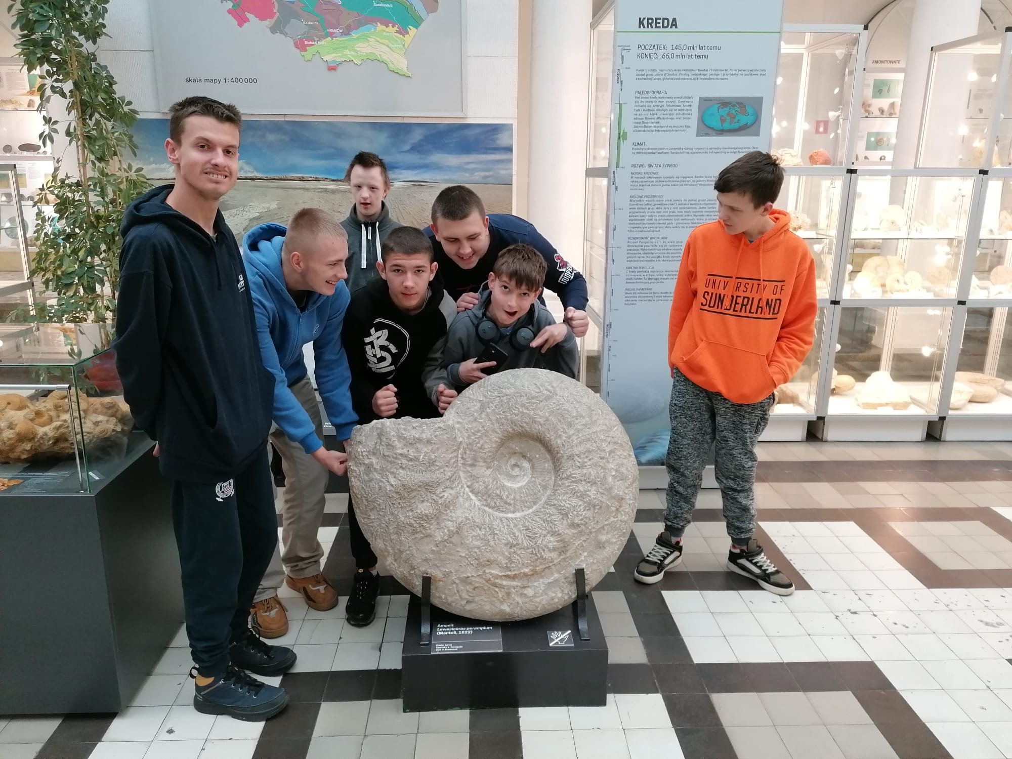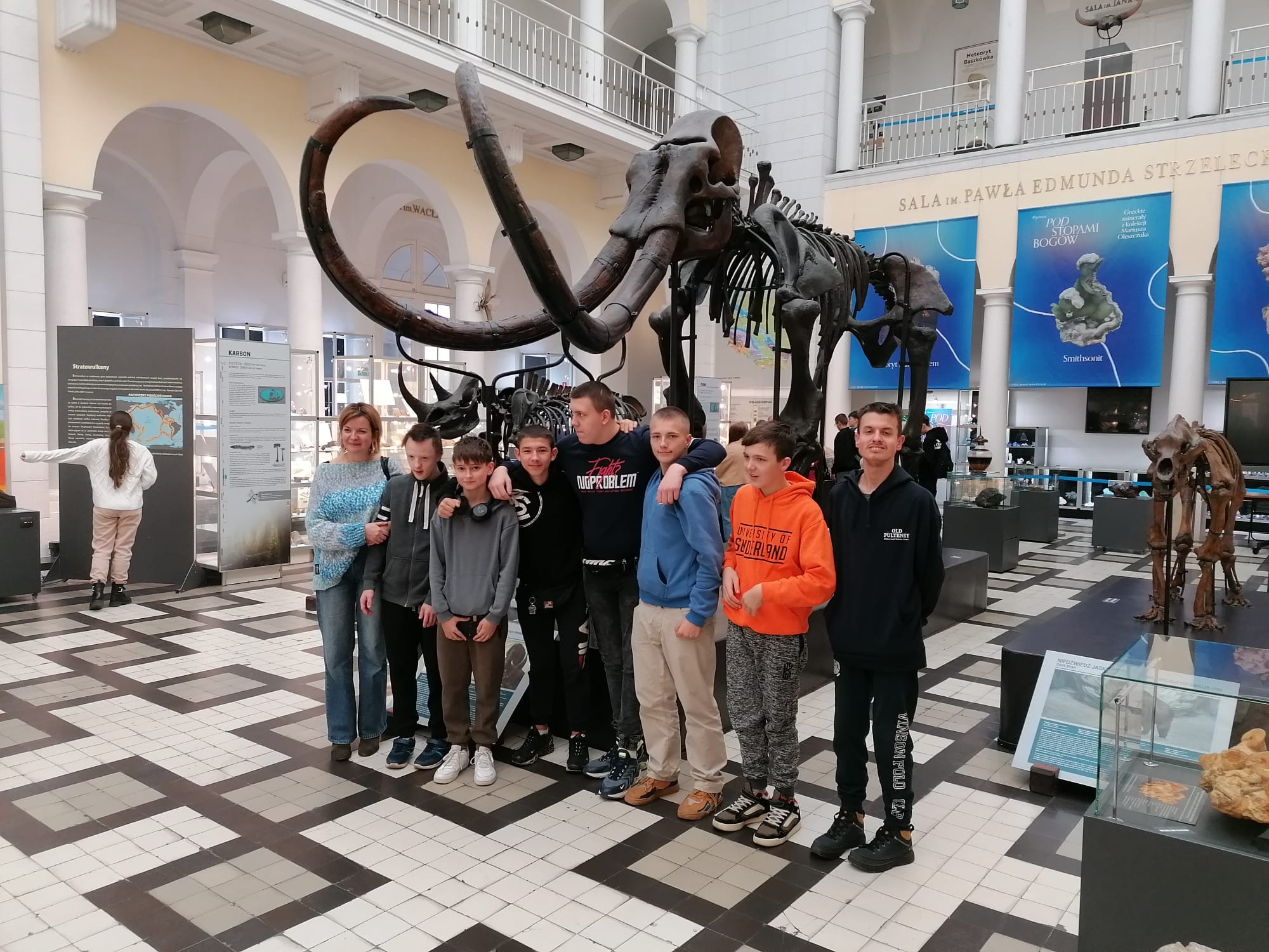 Uczniowie z kl. 6 szkoły podstawowej, Z5b i kl. 2a szkoły przysposabiającej do pracy wraz ze swoimi wychowawcami i nauczycielką biologii uczestniczyli w odkrywaniu fascynującego świata skał, minerałów i skamieniałości. Odbyli prawdziwą podróż w czasie, która zabrała ich w odległą przeszłość Ziemi. A wszystko za sprawą wizyty w Muzeum Geologicznym w Warszawie. Najciekawszymi eksponatami okazały się szkielety wielkich ssaków z epoki lodowcowej: mamuta, nosorożca włochatego i niedźwiedzia jaskiniowego.