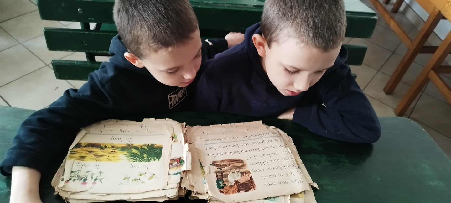 Dzieci na chwilę „przeniosły się w czasie" i znalazły się w „starej szkole". W ten sposób dowiedziały się, jak kiedyś wyglądało nauczanie. Obejrzały przybory szkolne i fartuszki, siedziały w szkolnej ławce z kałamarzem, ćwiczyły kaligrafię, pisząc piórem ze stalówką.
