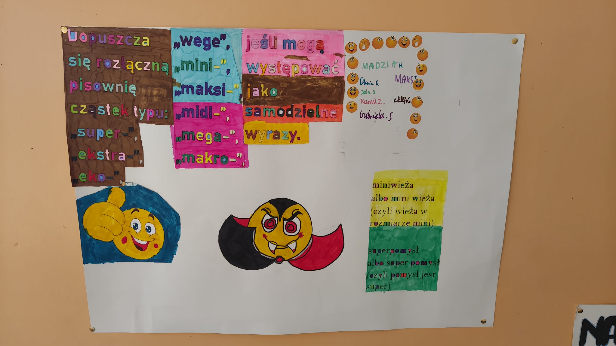 Efektem pracy naszych podopiecznych są plakaty, w przystępny sposób prezentujące większość nowych reguł. Zostały już one wyeksponowane na korytarzu szkolnym. Oby pomogły wszystkim zapamiętać zmiany i pisać zgodnie z aktualnie obowiązującymi zasadami.
