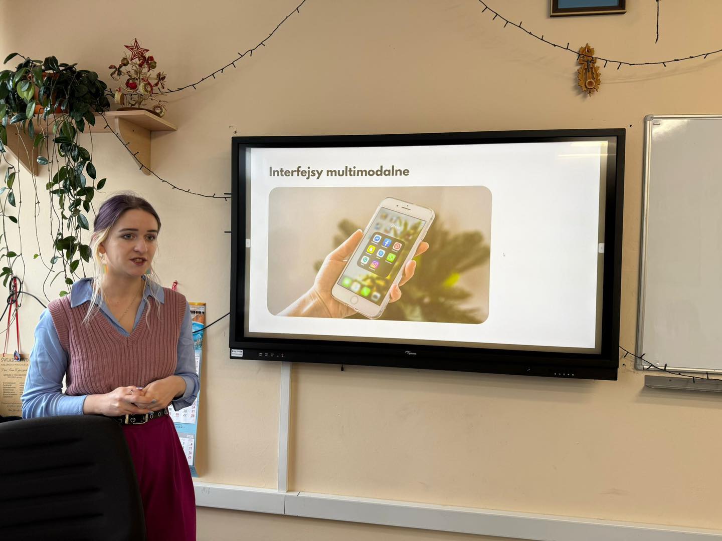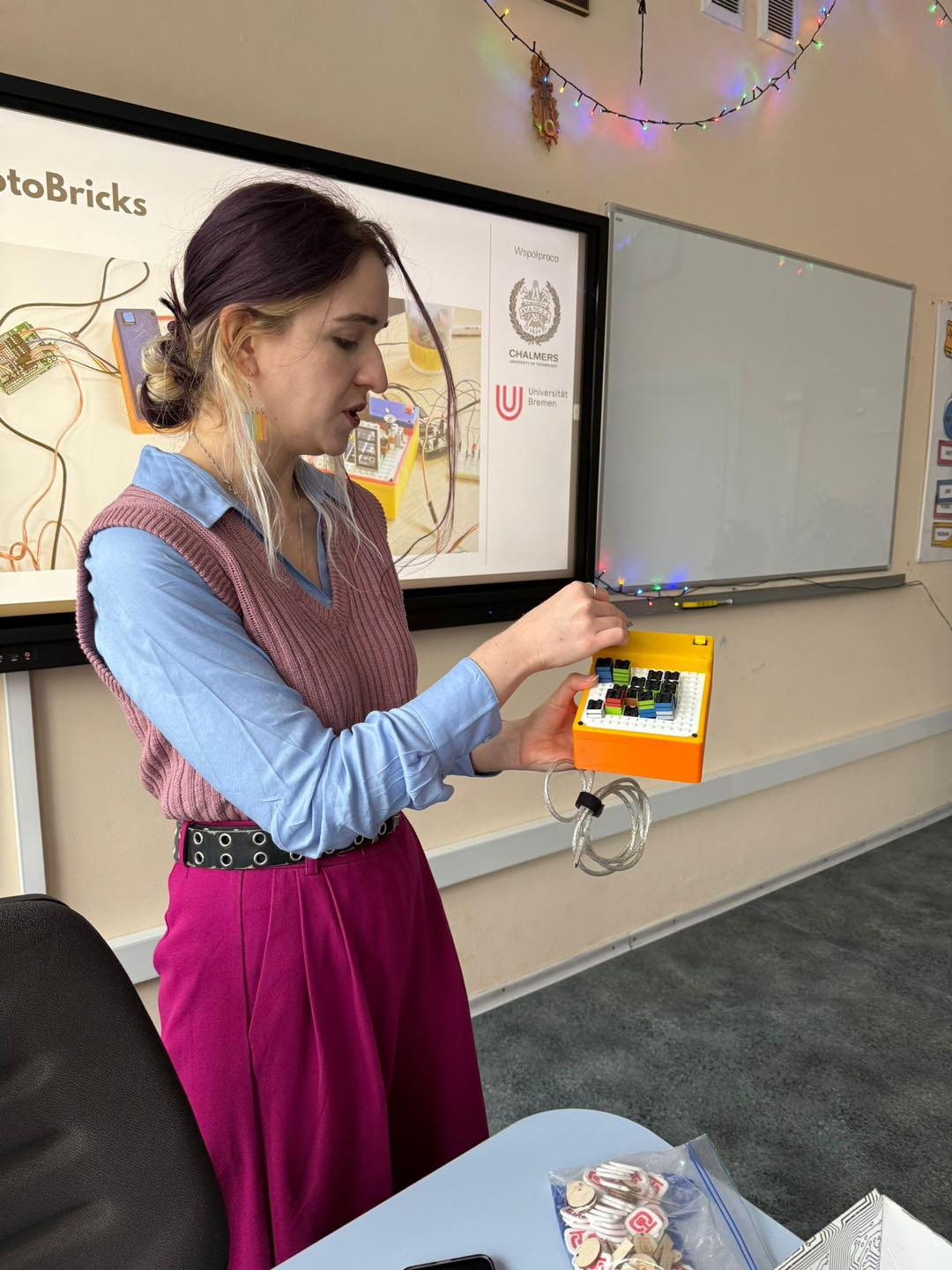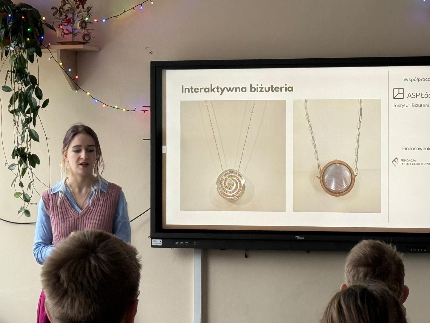 Prowadząca wyjaśniła, na czym polega interakcja człowieka z komputerem, jakie są typy interfejsów, jakie prototypy można wykonać w laboratoriach i jakie mają zastosowanie. Ponadto zaprezentowała interaktywną biżuterię, ICT w teleopiece, gry planszowe, a uczniowie wzięli udział w interaktywnych zajęciach poprzez oglądanie prototypów.