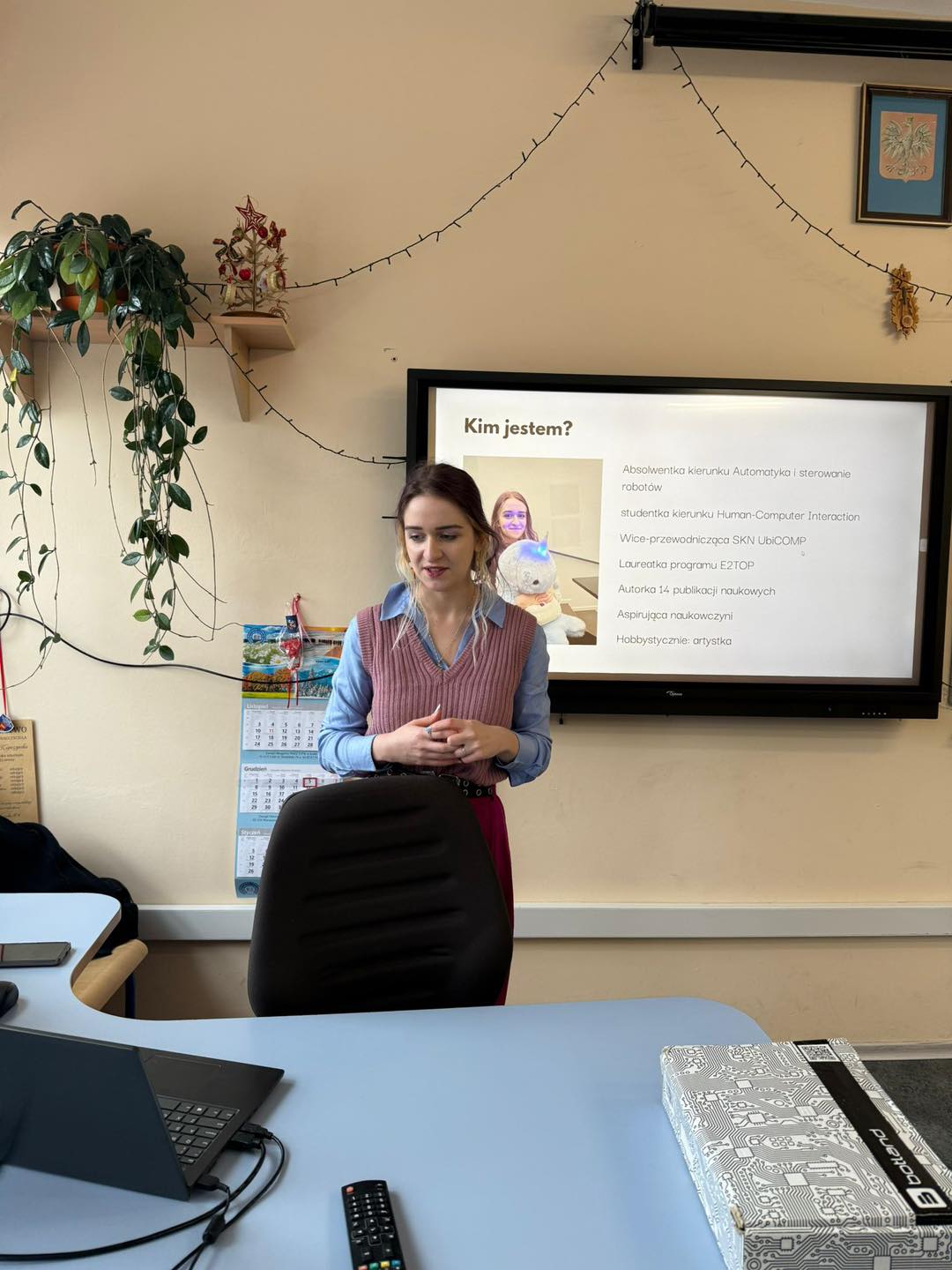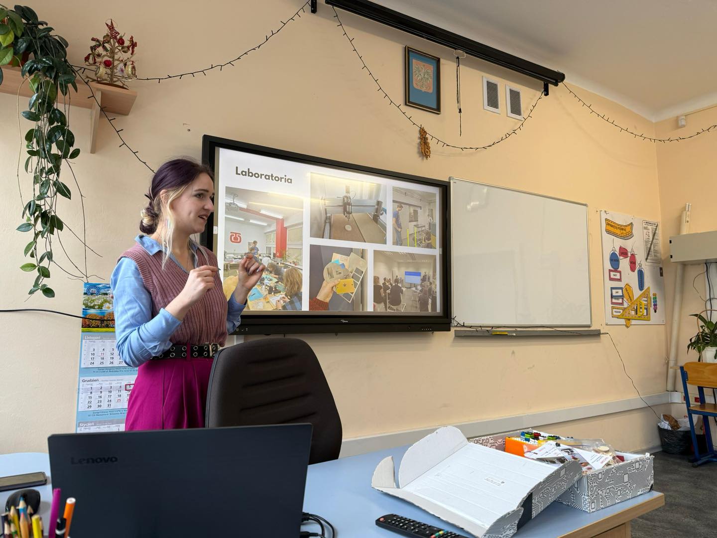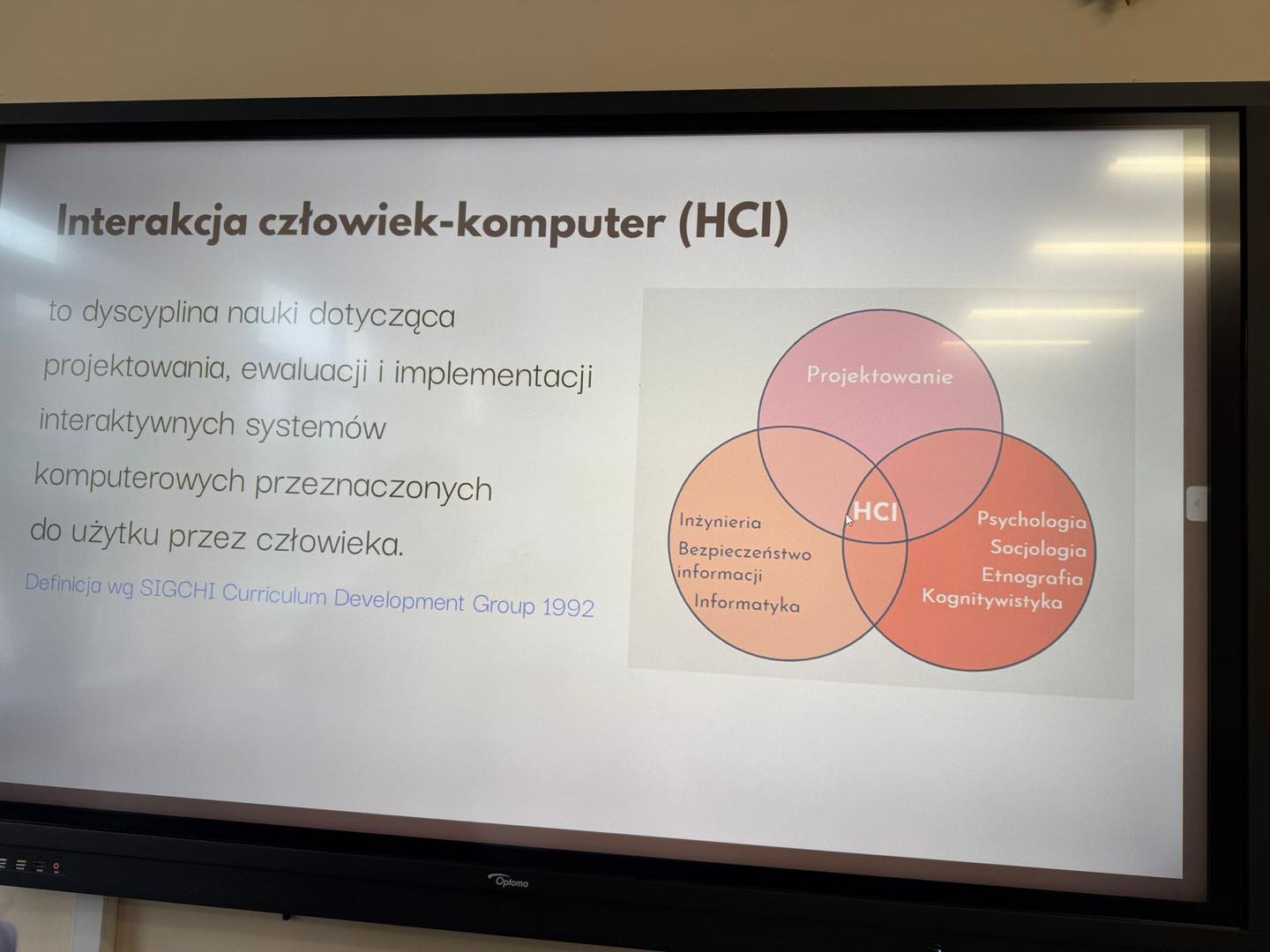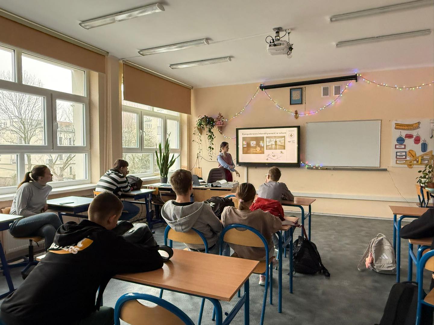 Prowadząca wyjaśniła, na czym polega interakcja człowieka z komputerem, jakie są typy interfejsów, jakie prototypy można wykonać w laboratoriach i jakie mają zastosowanie. Ponadto zaprezentowała interaktywną biżuterię, ICT w teleopiece, gry planszowe, a uczniowie wzięli udział w interaktywnych zajęciach poprzez oglądanie prototypów.
