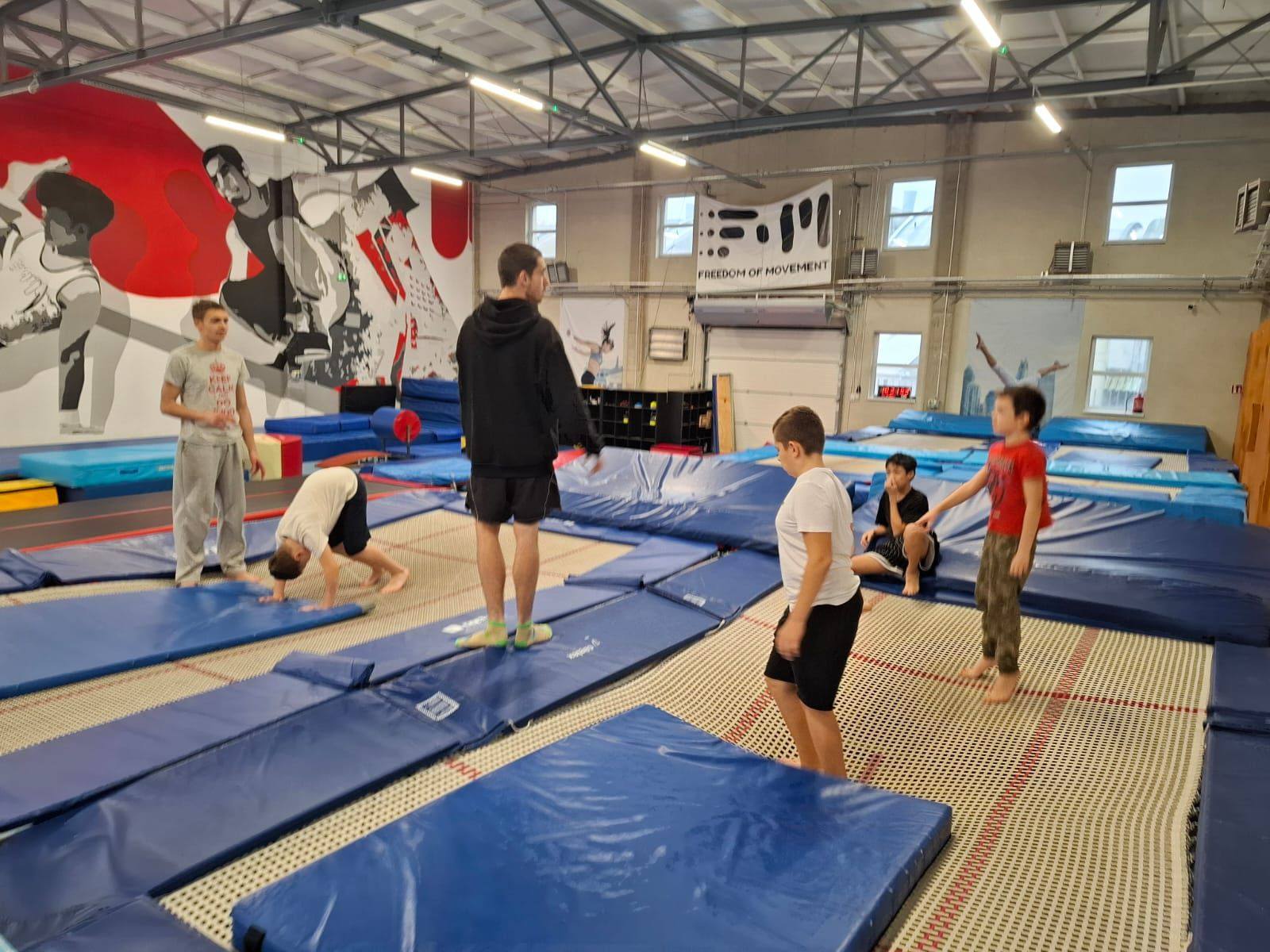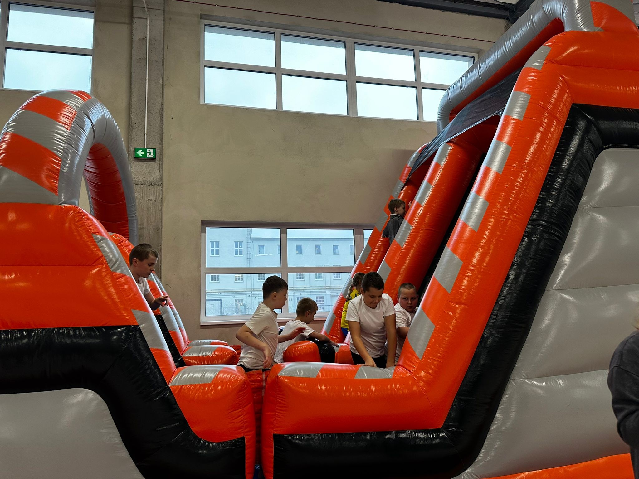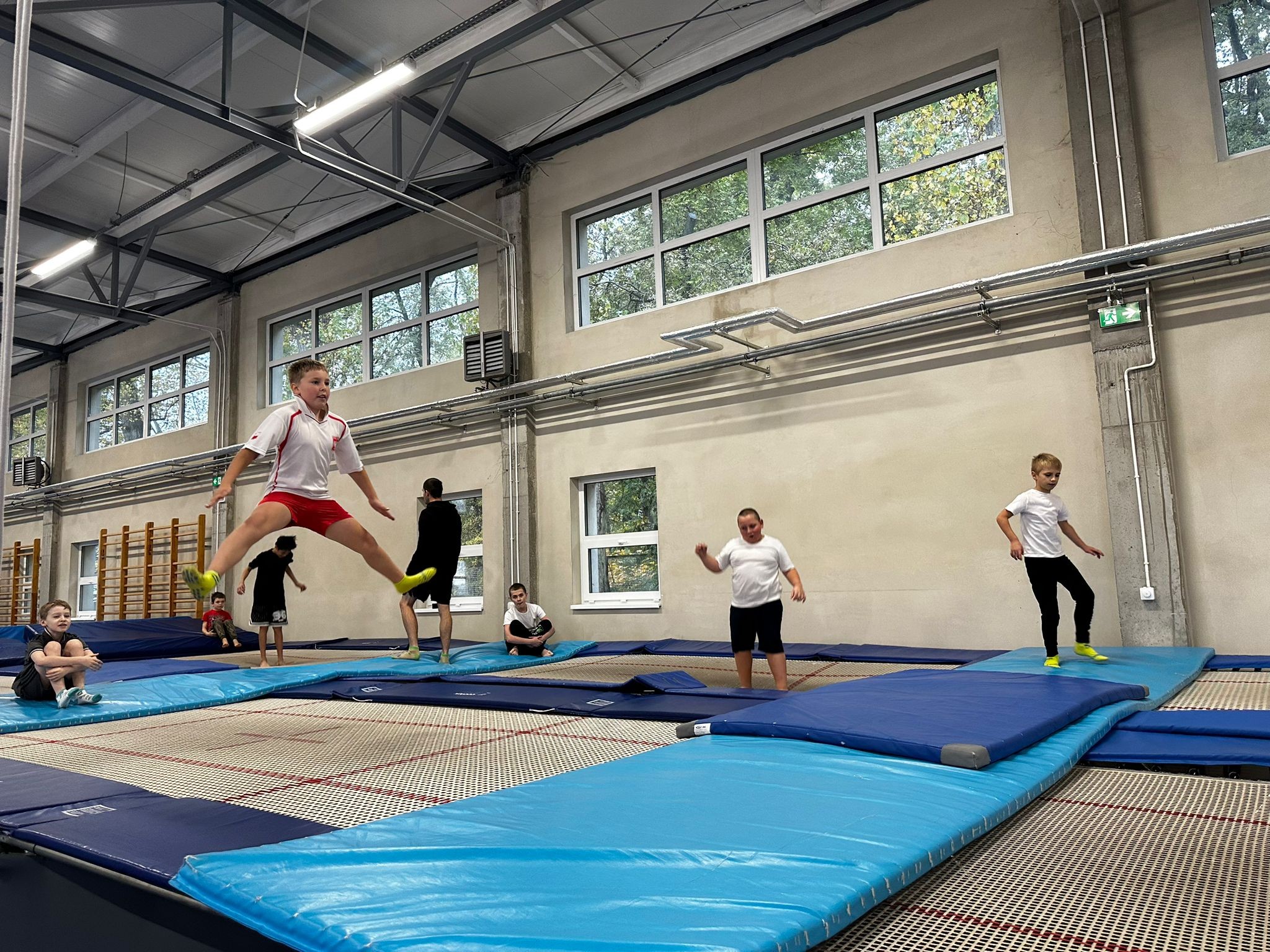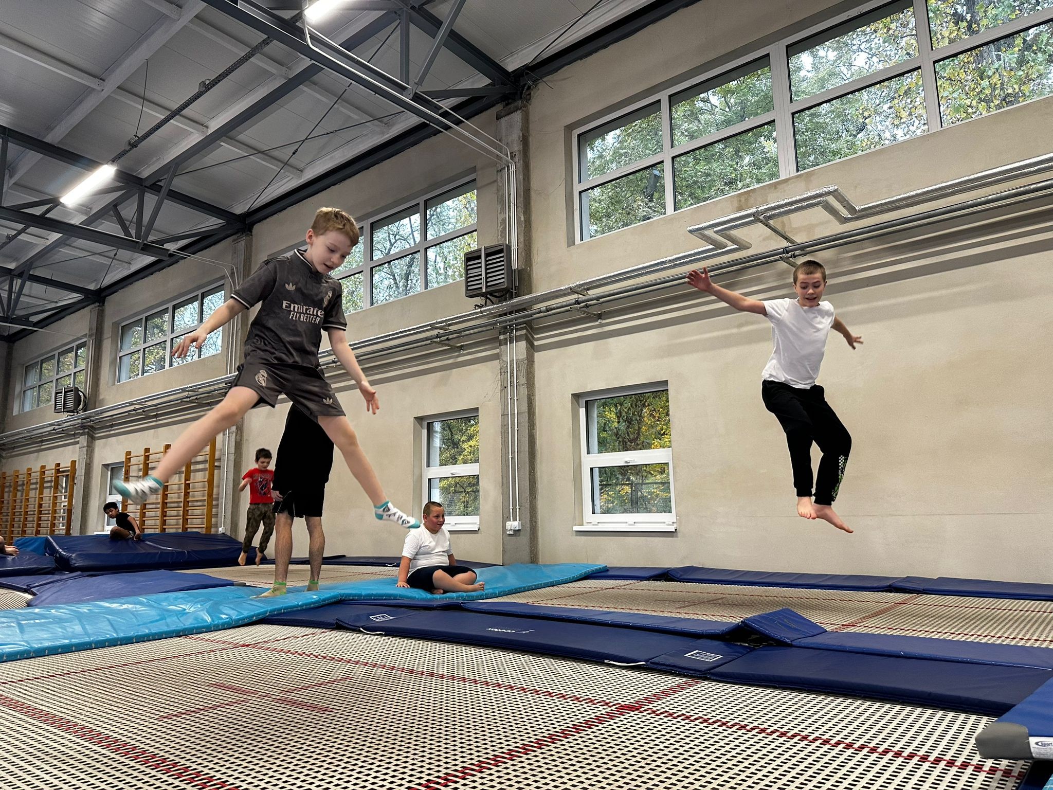W ramach innowacji pedagogicznej uczniowie wzięli udział w wyjątkowych warsztatach z elementami parkour. Z odwagą pokonywali tory przeszkód, uczyli się nowych trików, przełamywali swoje lęki i świetnie bawili się na trampolinach. Niektórym udało się zrobić nawet salta! Na zakończenie zajęć – szaleńcza zabawa na dmuchanym zamku.