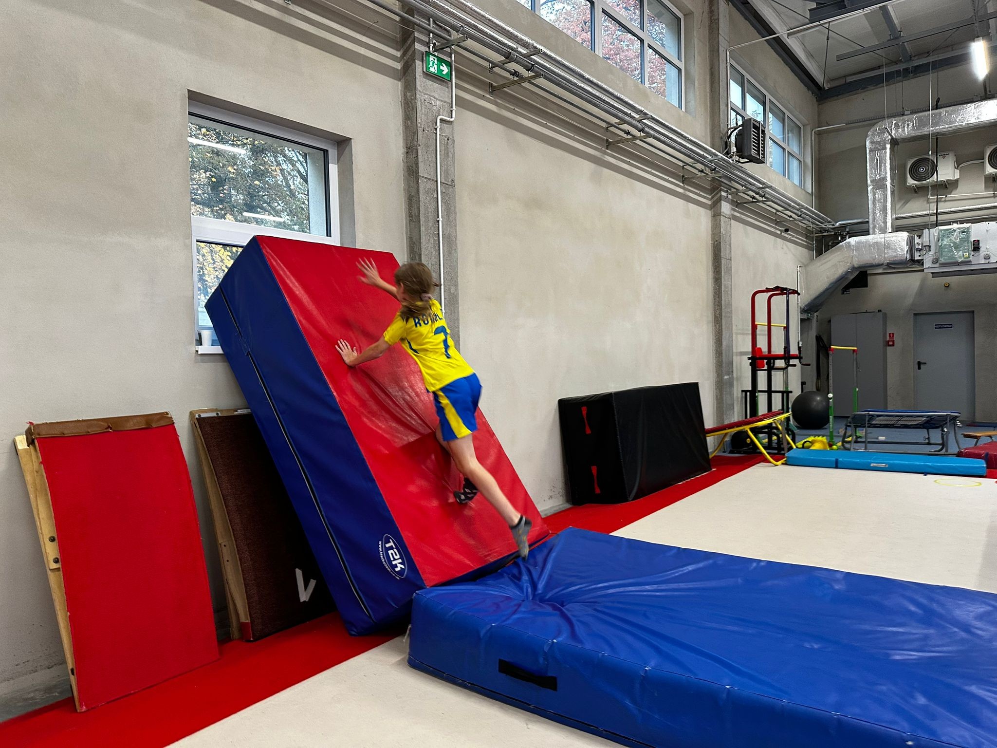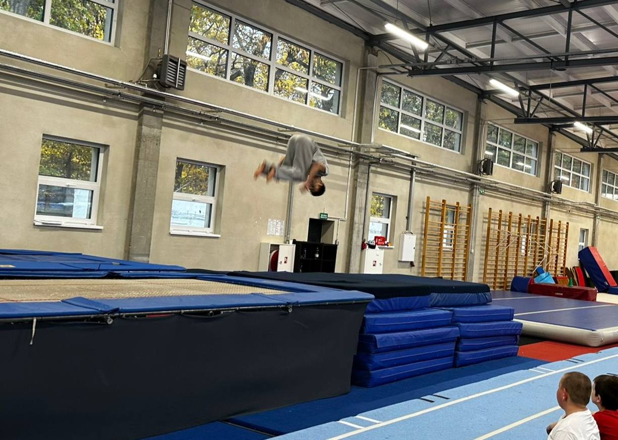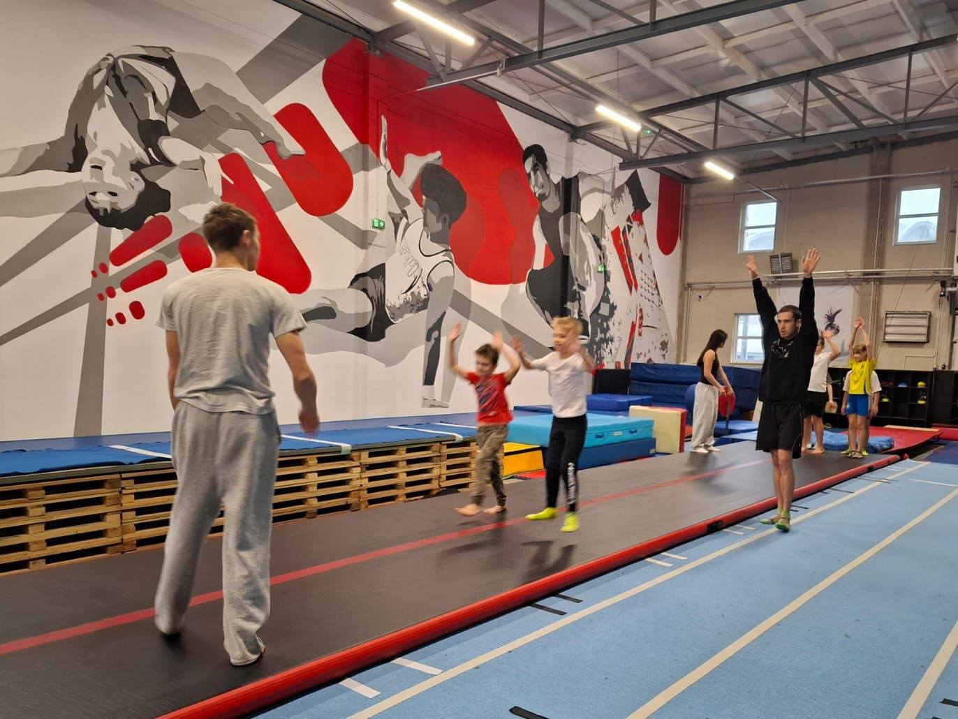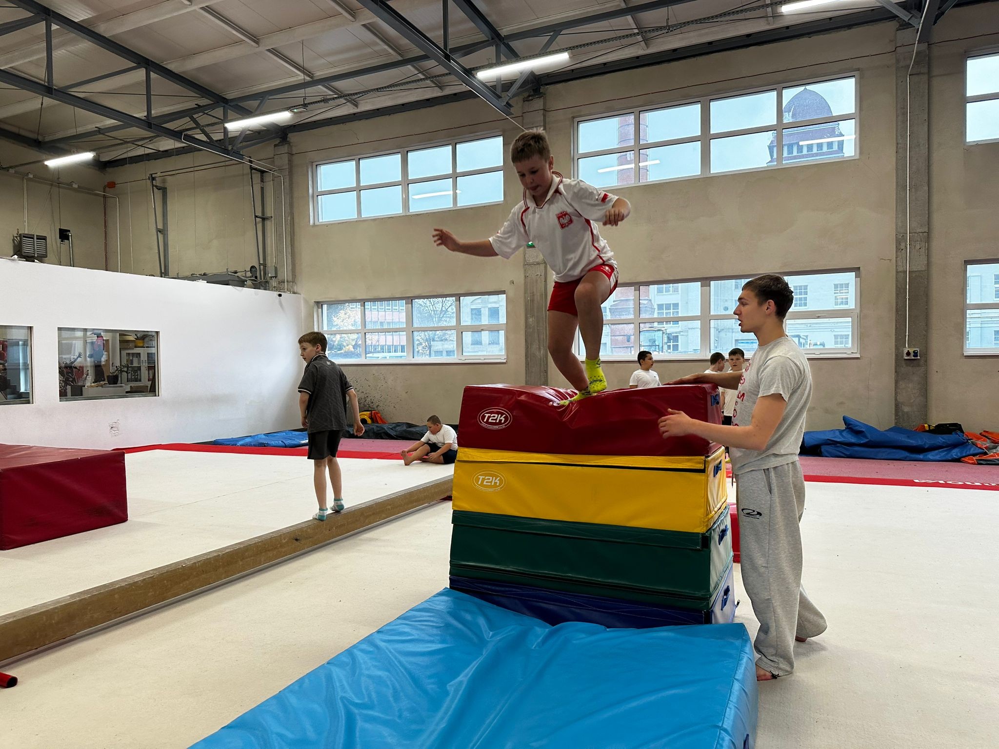 W ramach innowacji pedagogicznej uczniowie wzięli udział w wyjątkowych warsztatach z elementami parkour. Z odwagą pokonywali tory przeszkód, uczyli się nowych trików, przełamywali swoje lęki i świetnie bawili się na trampolinach. Niektórym udało się zrobić nawet salta! Na zakończenie zajęć – szaleńcza zabawa na dmuchanym zamku.