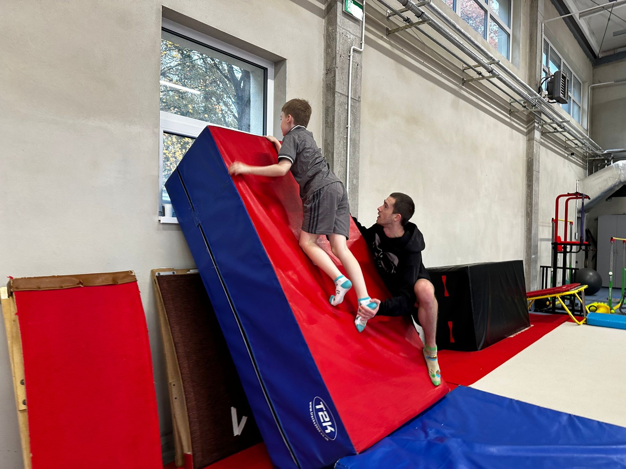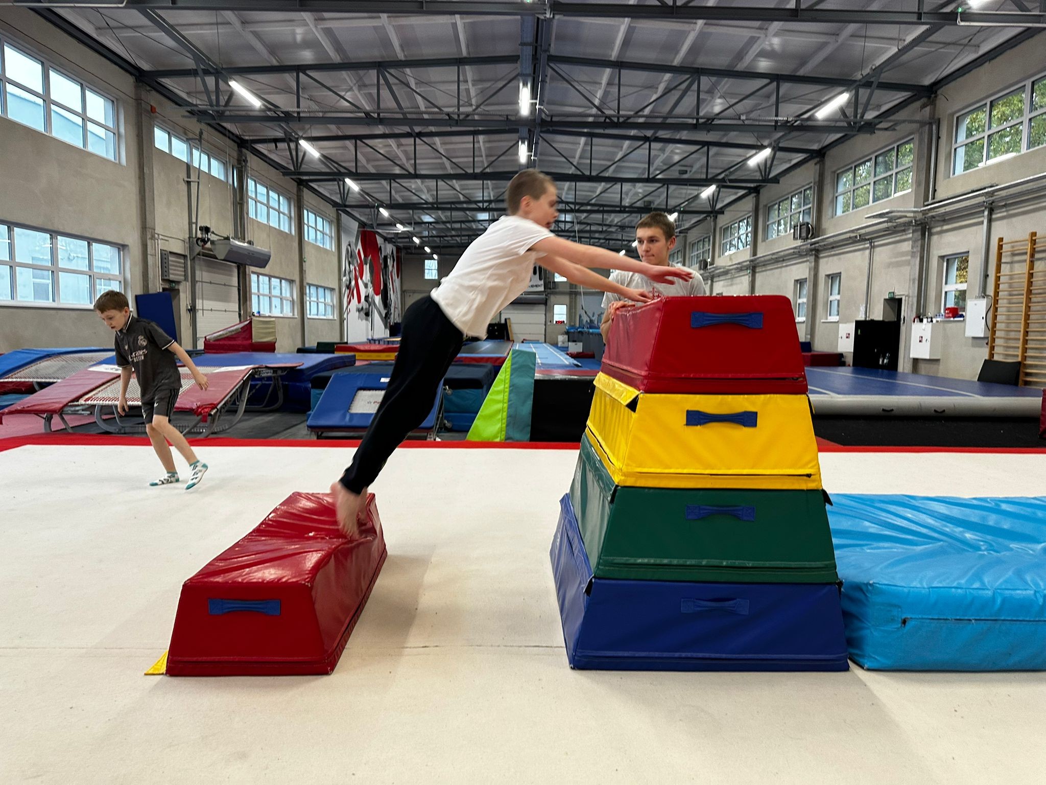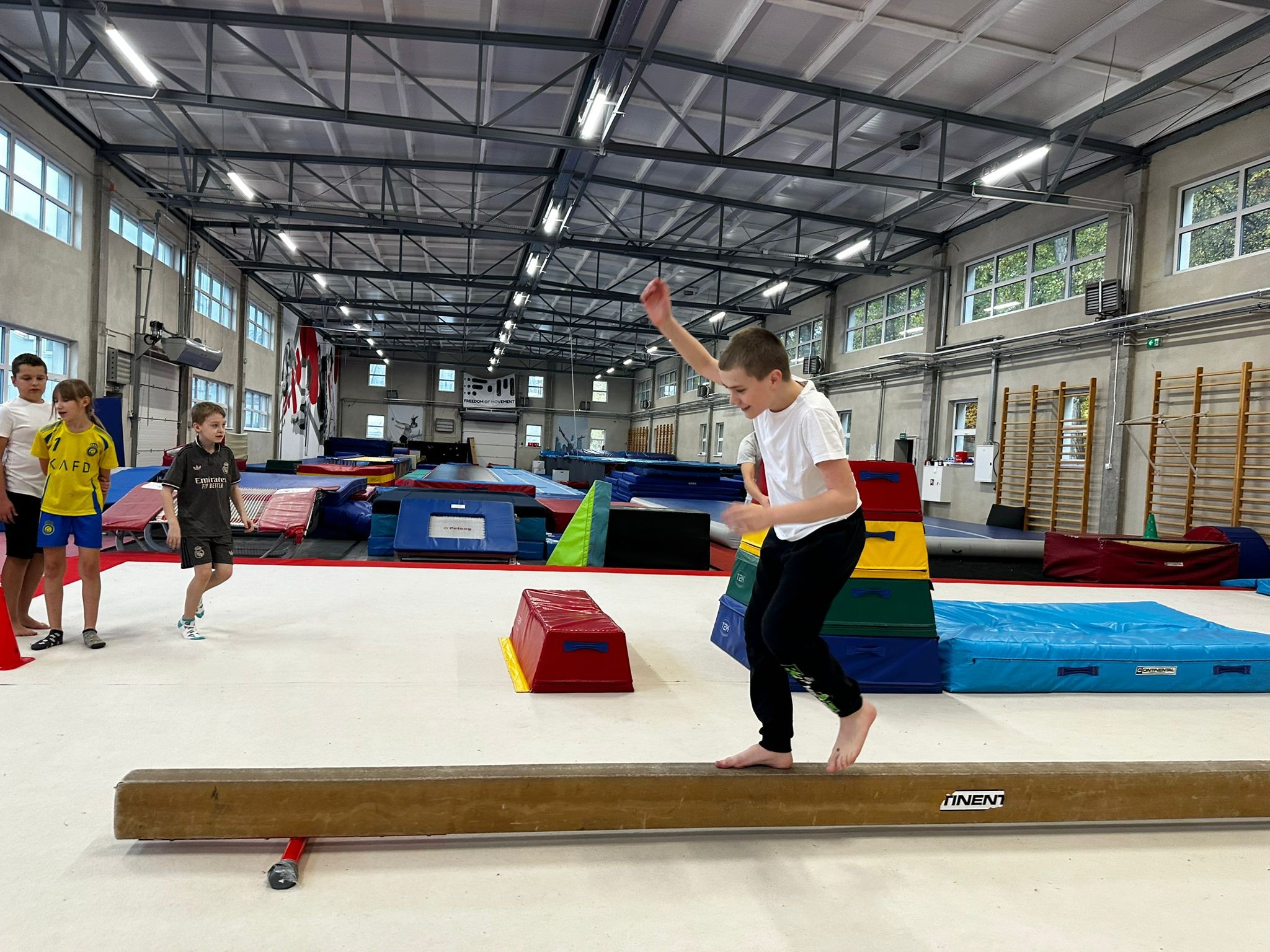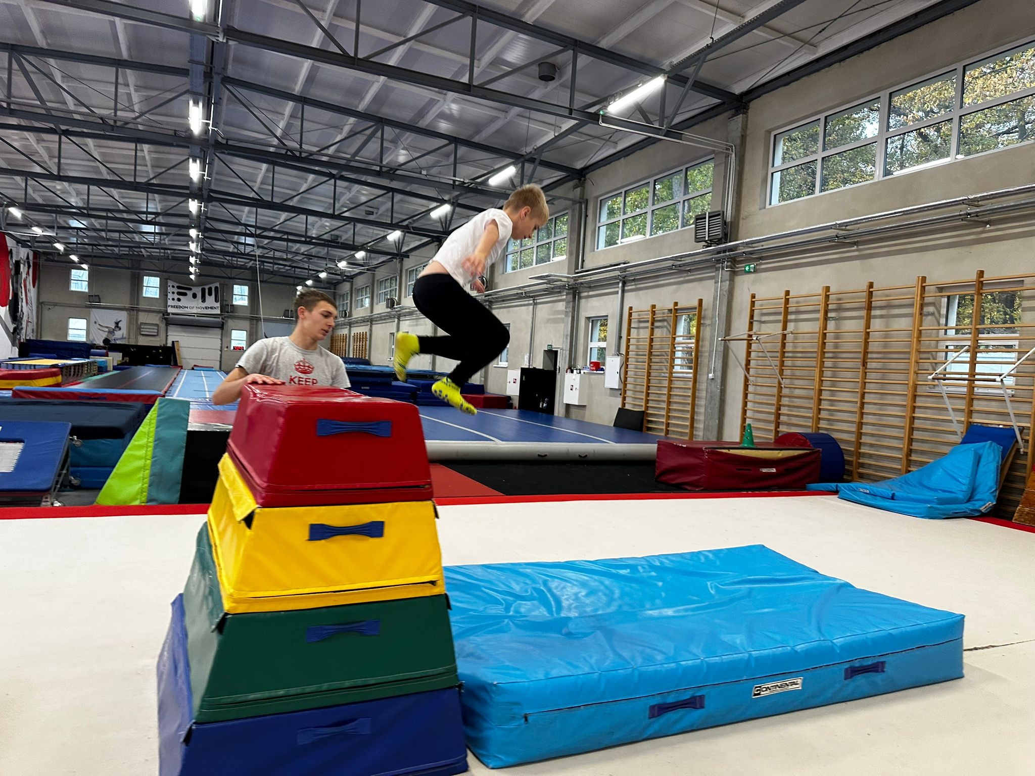 W ramach innowacji pedagogicznej uczniowie wzięli udział w wyjątkowych warsztatach z elementami parkour. Z odwagą pokonywali tory przeszkód, uczyli się nowych trików, przełamywali swoje lęki i świetnie bawili się na trampolinach. Niektórym udało się zrobić nawet salta! Na zakończenie zajęć – szaleńcza zabawa na dmuchanym zamku.