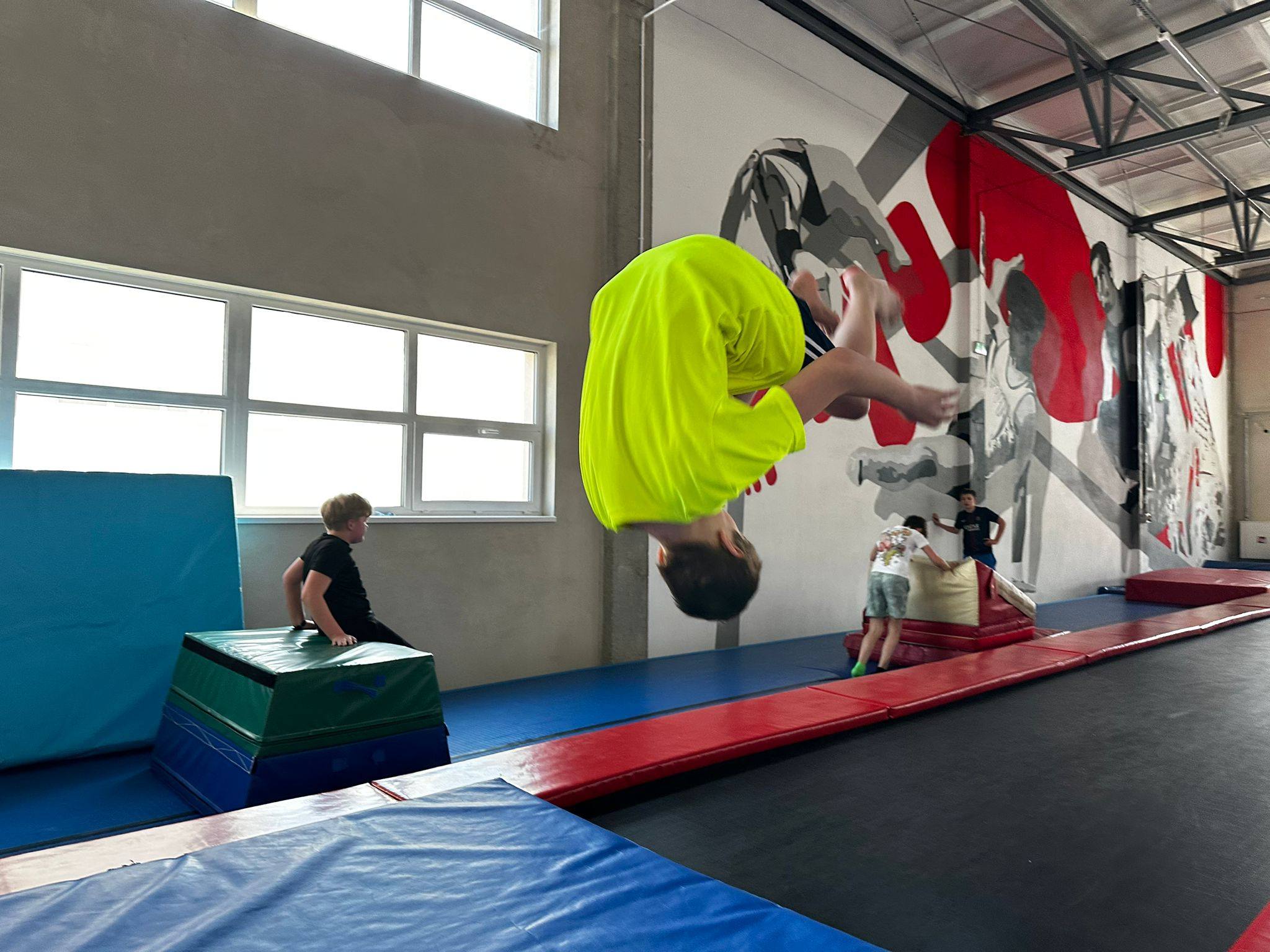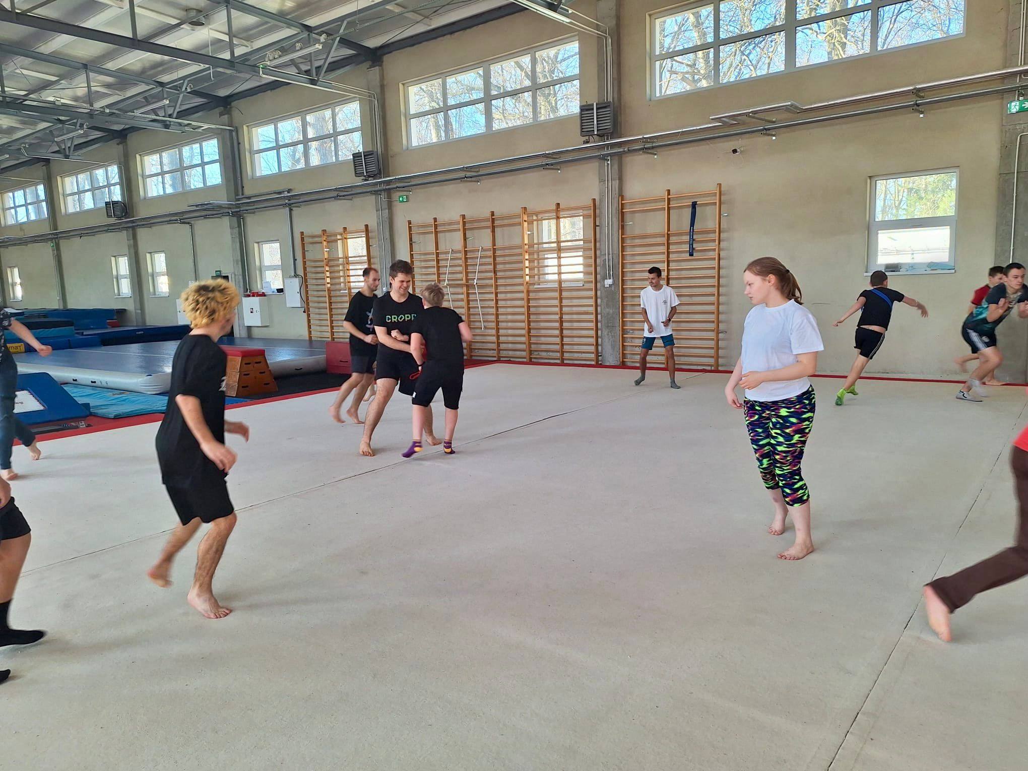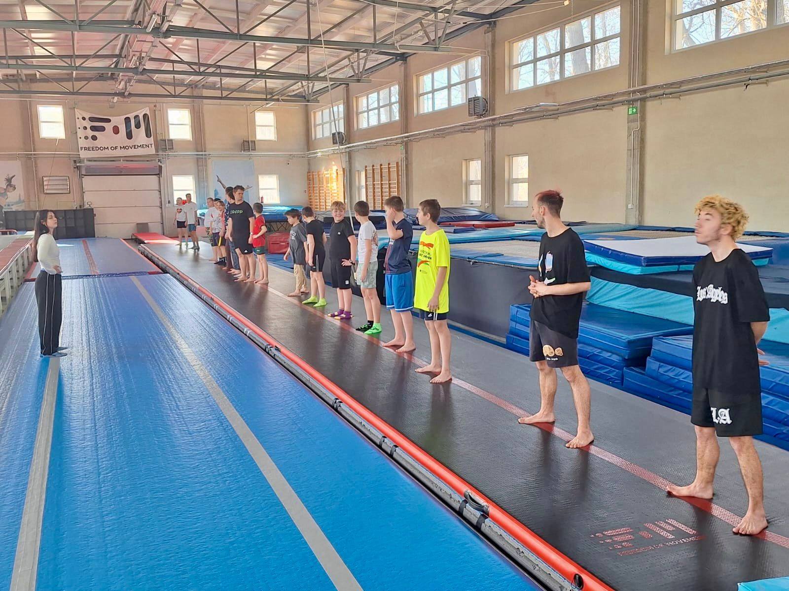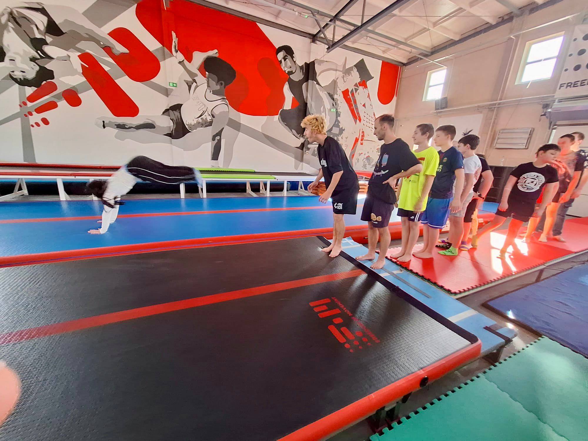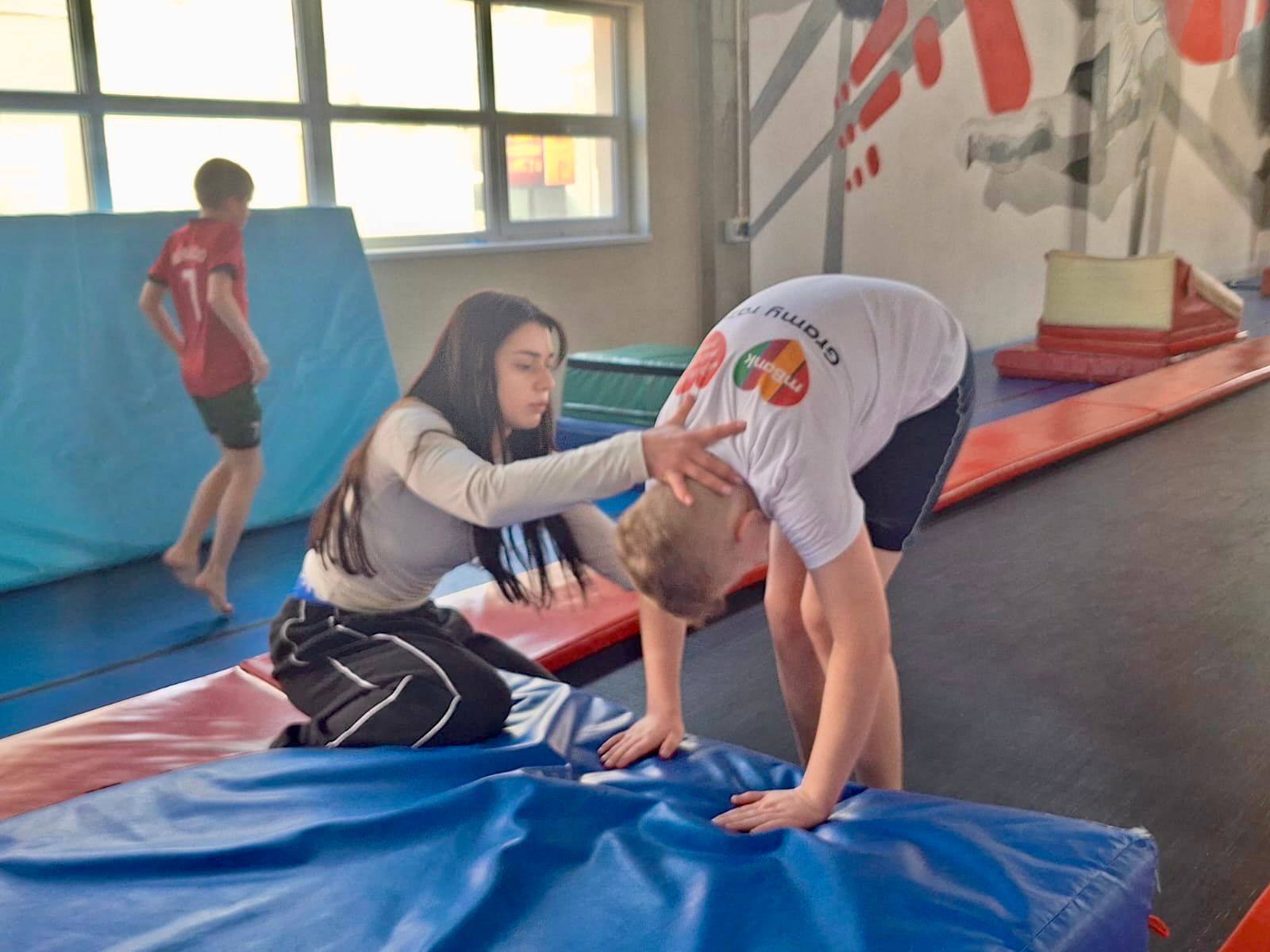 W tym miesiącu naszym celem były salta w przód! Najpierw doskonaliliśmy poprawne wykonywanie przewrotów, a następnie przeszliśmy do nauki elementów akrobatycznych w powietrzu. Ogromne brawa i gratulacje dla wszystkich uczestników za odwagę, zaangażowanie i wytrwałość!