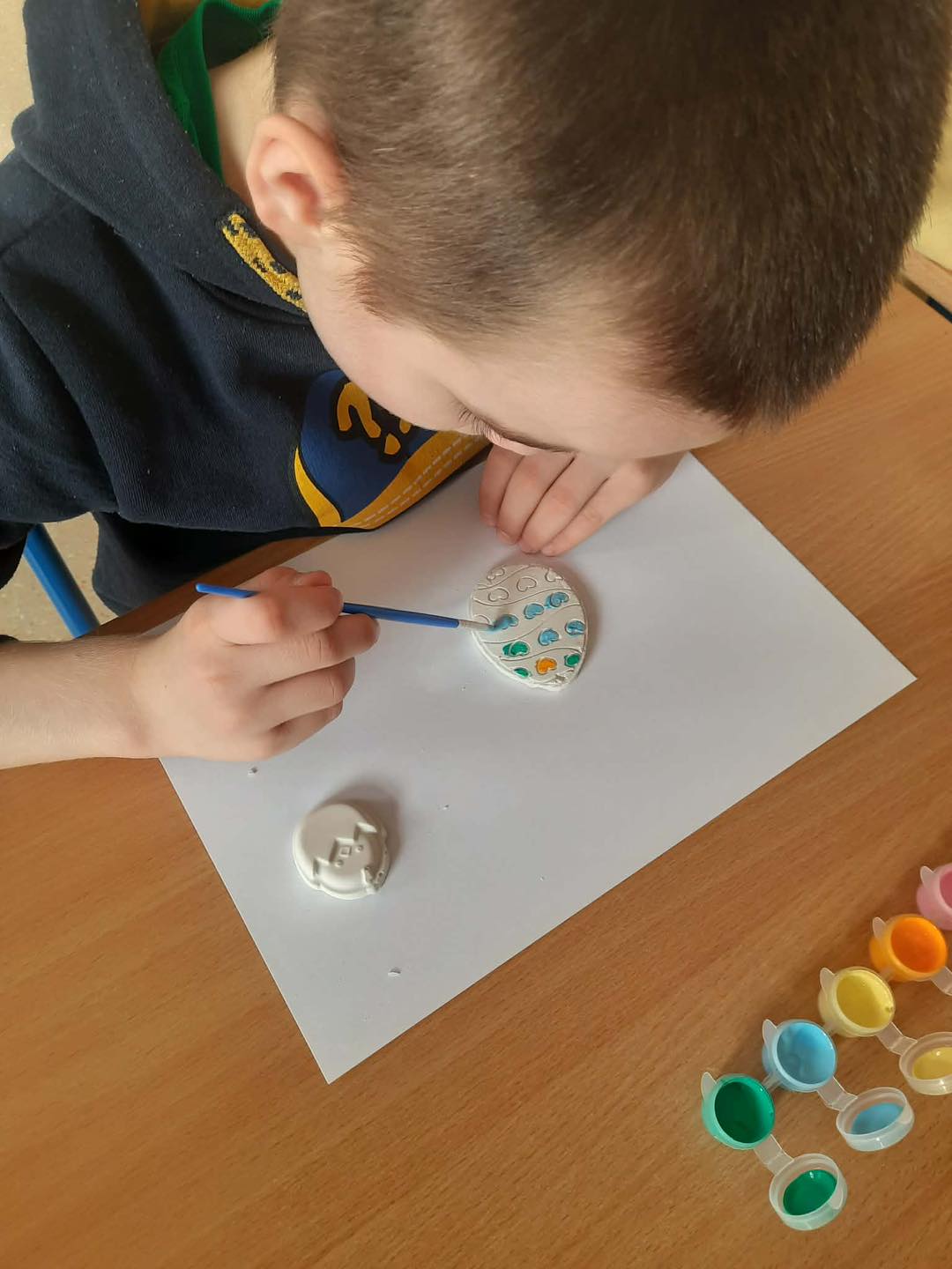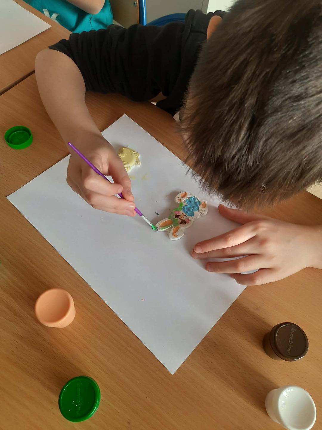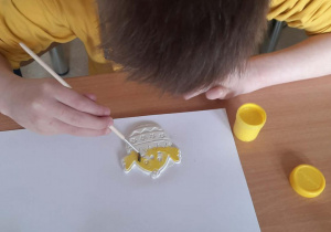 Na zajęciach zorganizowanych dla klas I i II szkoły podstawowej uczniowie stworzyli przepiękne ozdoby wielkanocne. Dzieci pomalowały wykonane wcześniej gipsowe figurki w kształcie jajek i zajączków. Do domów zaś zabrały kurczaki, w których za kilka dni wyrośnie zdrowa zielona rzeżucha.