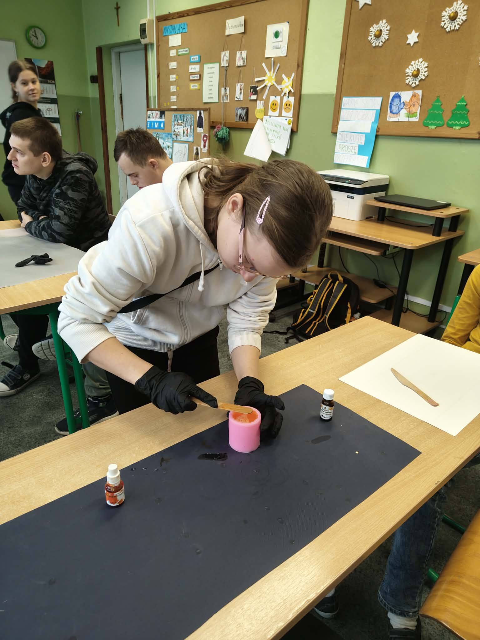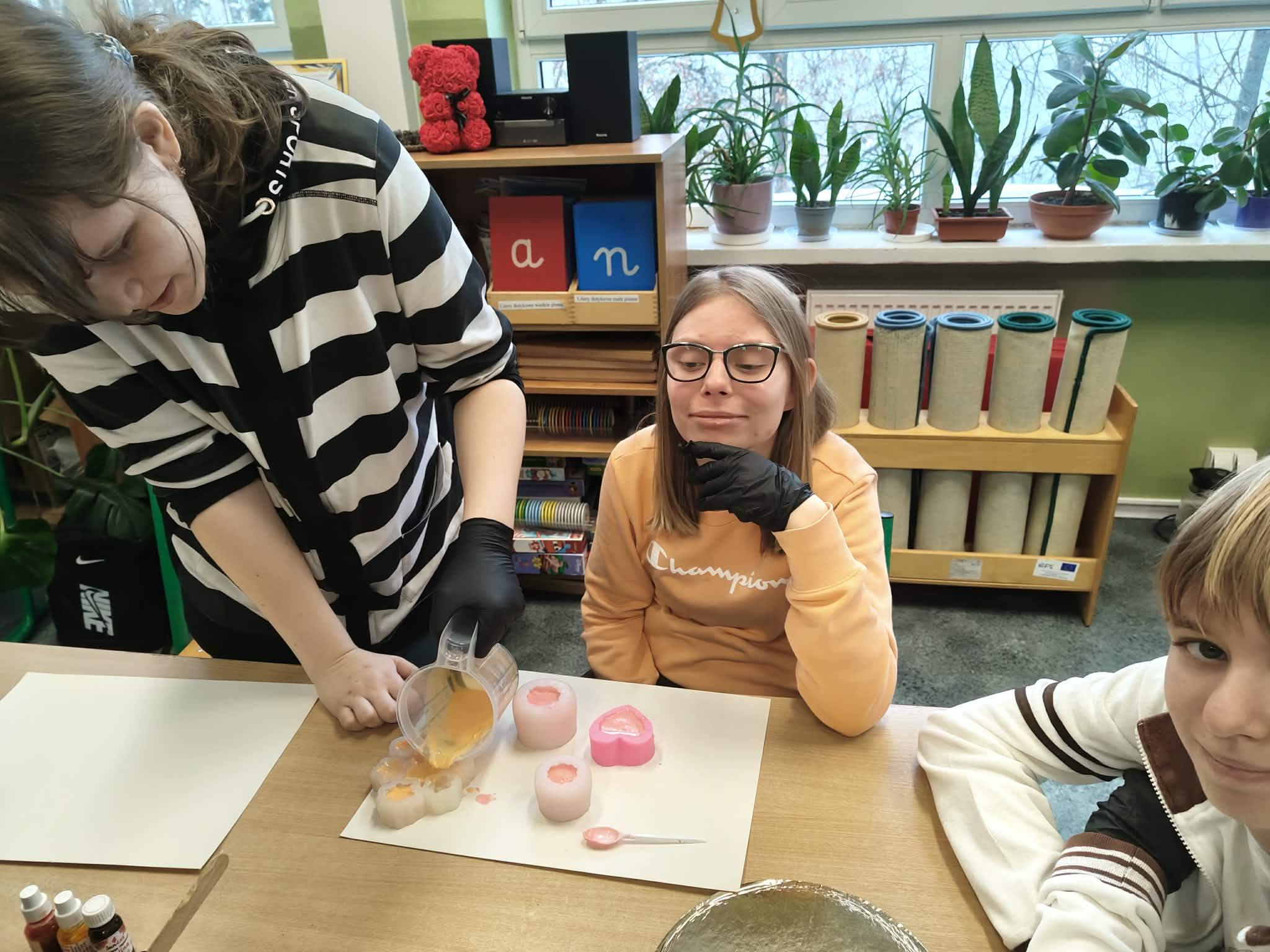 Szkolni wolontariusze oraz Stowarzyszenie na Rzecz Osób Niepełnosprawnych i Ich Rodzin „Karolewska” wspólnymi siłami stworzyli mydełka glicerynowe oraz świeczki sojowe, które można zakupić w szkole. Dochód ze sprzedaży zostanie przekazany na rzecz WOŚP.