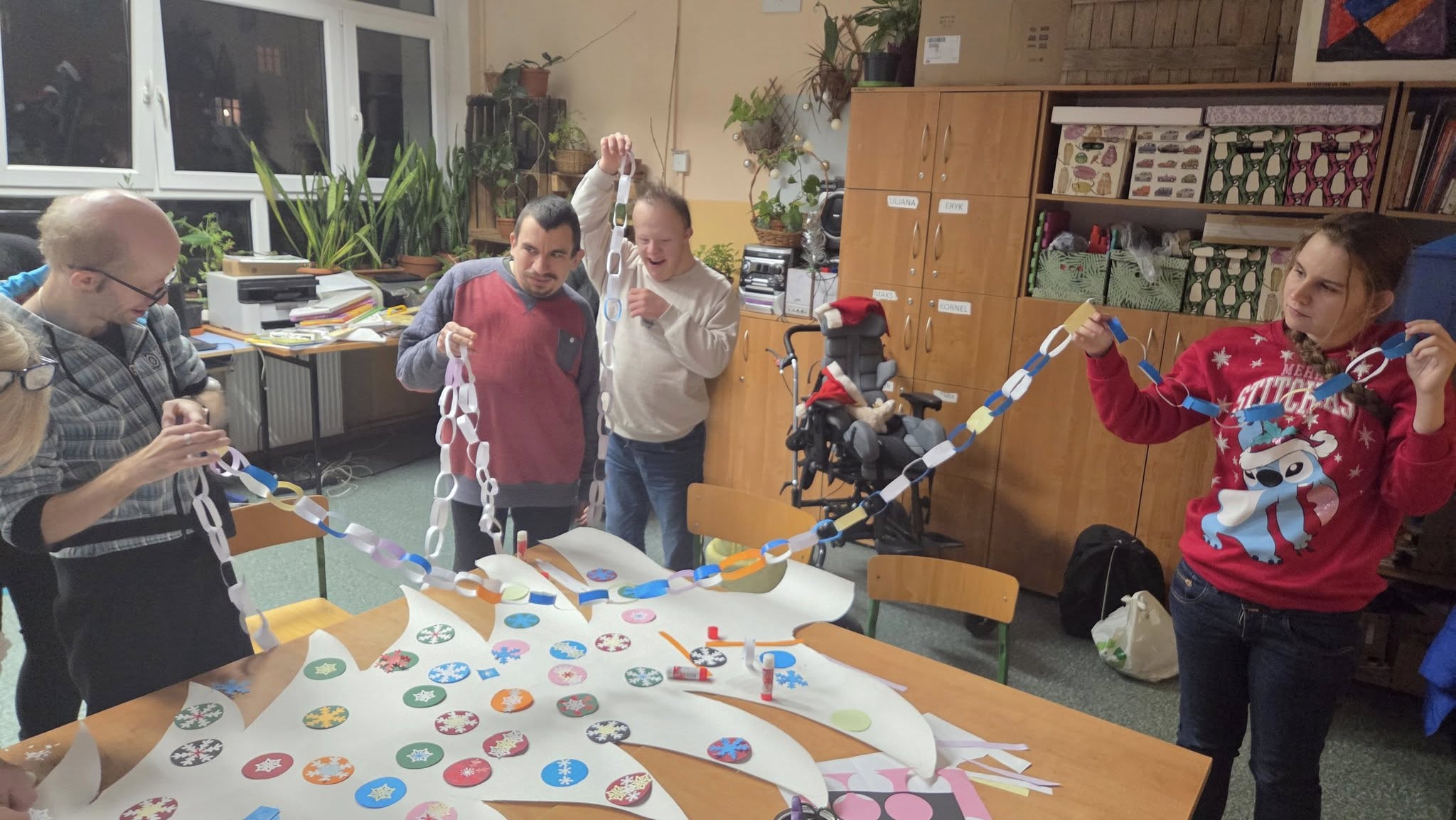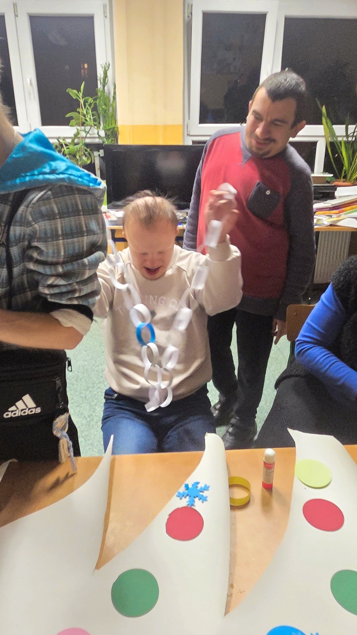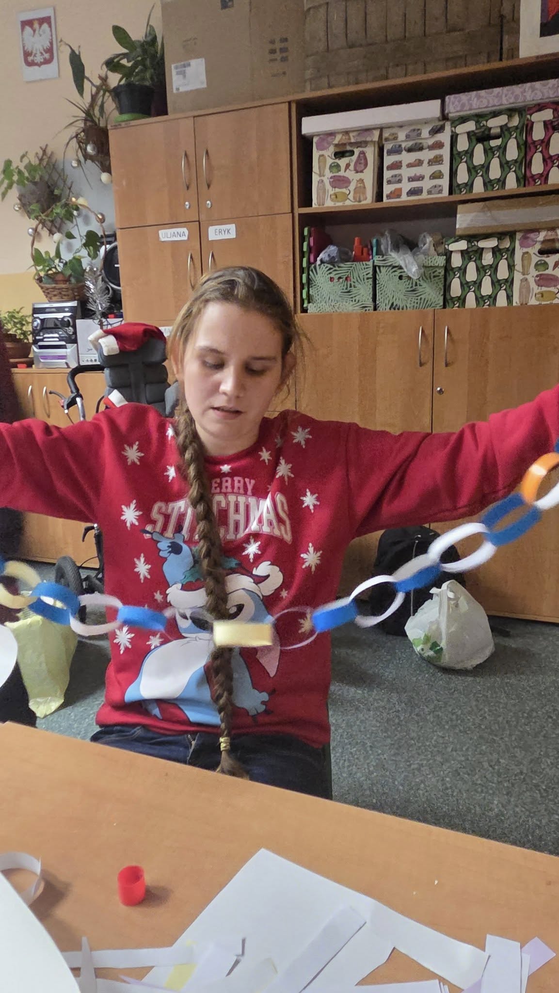 Spędziliśmy czas przy pysznych ciastkach i aromatycznej herbacie, w serdecznej, ciepłej atmosferze. Wykonaliśmy również piękną choinkę - pełną kolorów i świątecznych ozdób, która już teraz zdobi szkolny korytarz, wprowadzając wszystkich w bożonarodzeniowy nastrój.