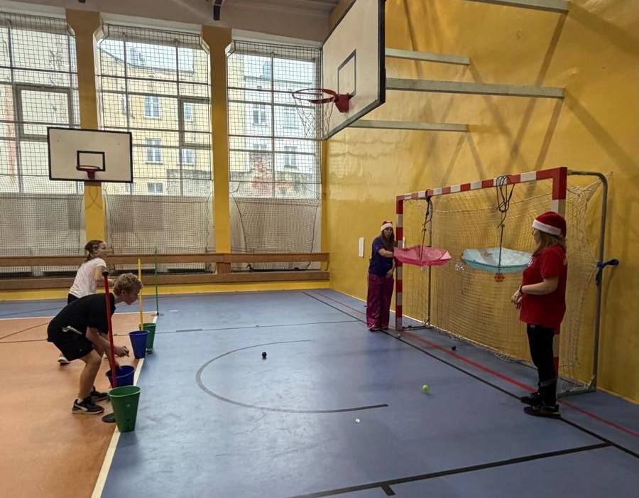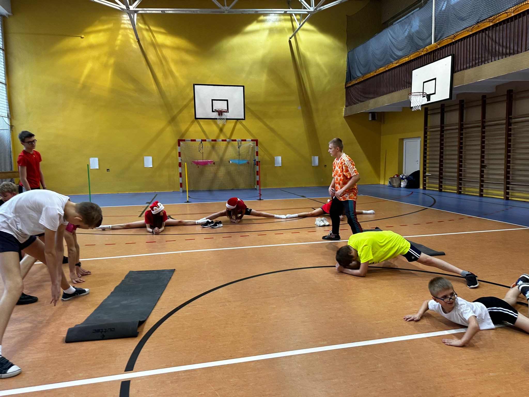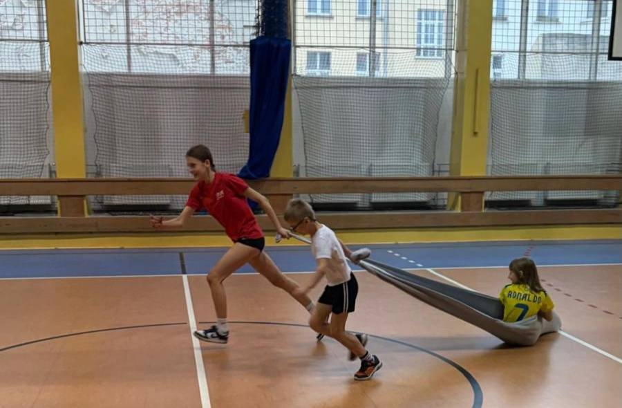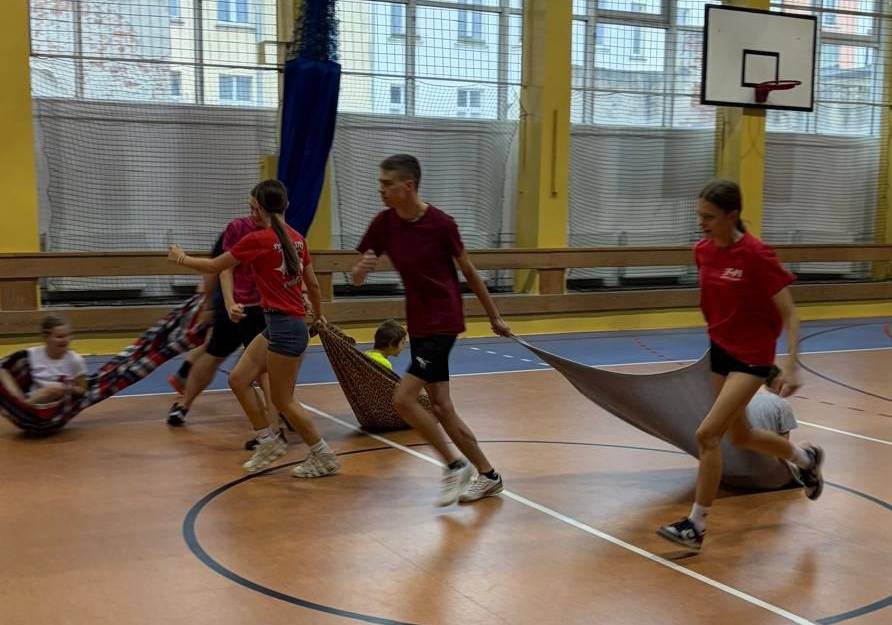 Dzisiaj miało miejsce kolejne i jednocześnie wyjątkowe spotkanie z akrobatyką. Po rozgrzewce uczestnicy warsztatów rywalizowali w zimowych wyścigach rzędów, co wywołało mnóstwo emocji i śmiechu.