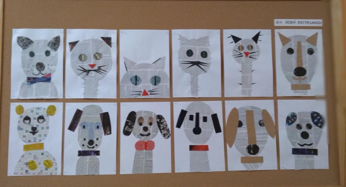 18 marca obchodzimy Światowy Dzień Recyklingu. Z tej okazji uczniowie wykonali portrety naszych domowych czworonogów, wykorzystując stare gazety. Wykazali się dużą kreatywnością.