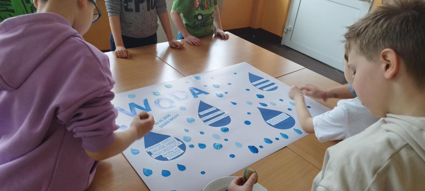 Z okazji Światowego Dnia Wody, obchodzonego 20 marca, nasi młodsi podopieczni uczestniczyli w warsztatach, podczas których przeprowadzili doświadczenia ilustrujące jaką rolę w środowisku odgrywa woda i dlaczego należy ją oszczędzać. Wykonali też ciekawy plakat – można go obejrzeć na szkolnym korytarzu.