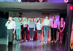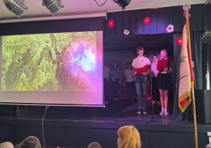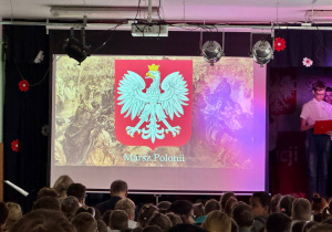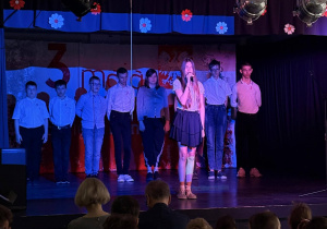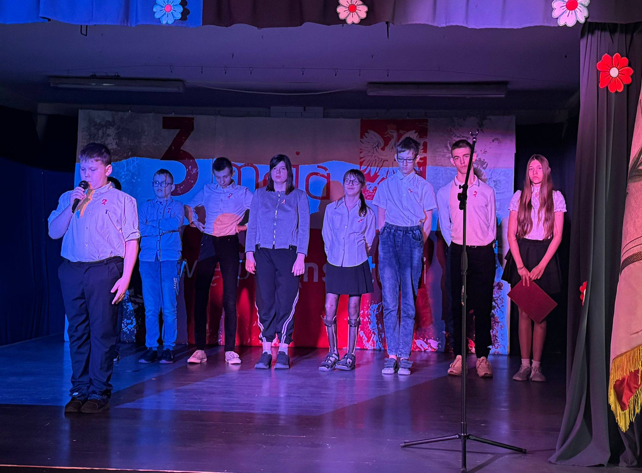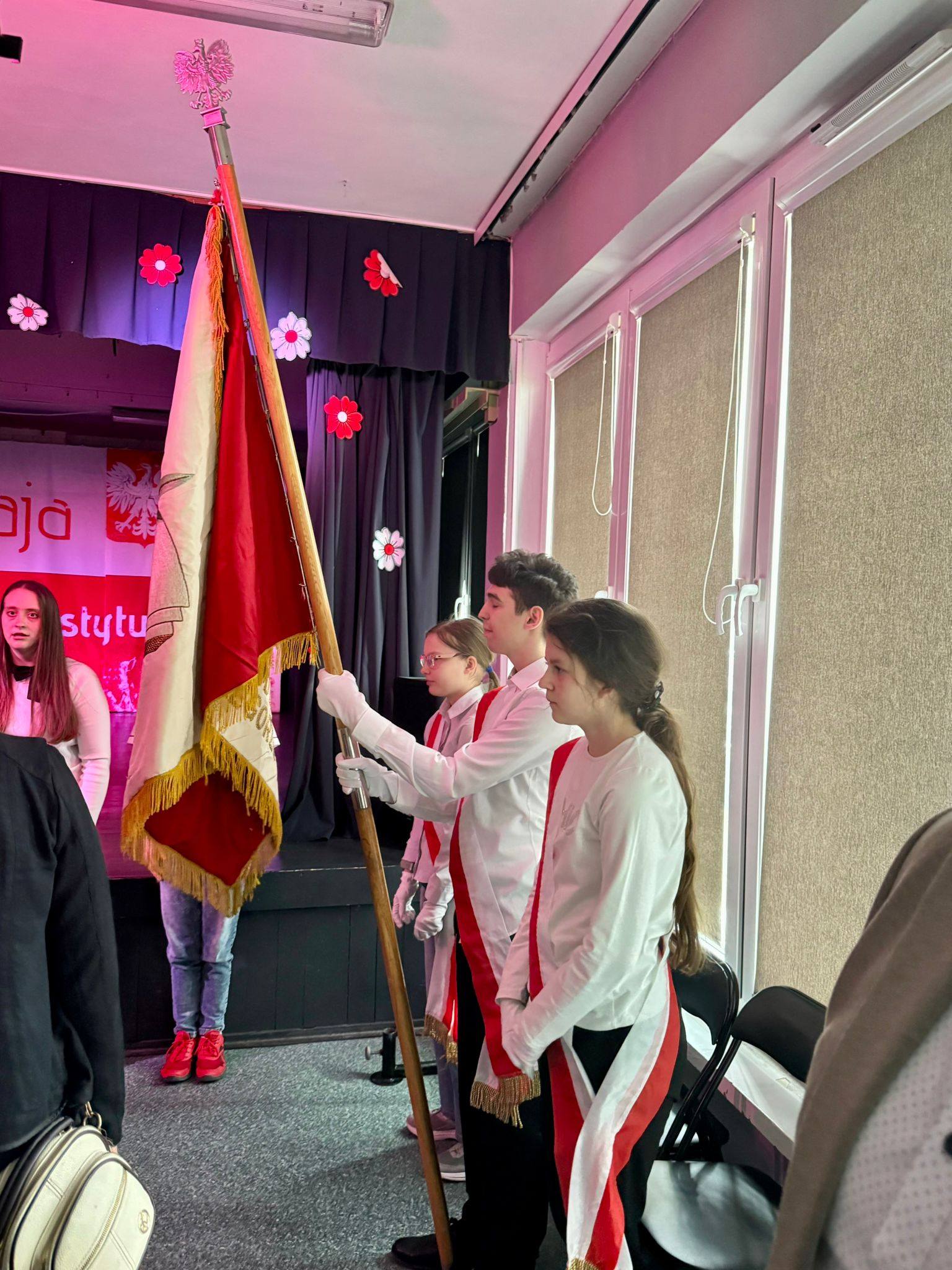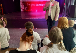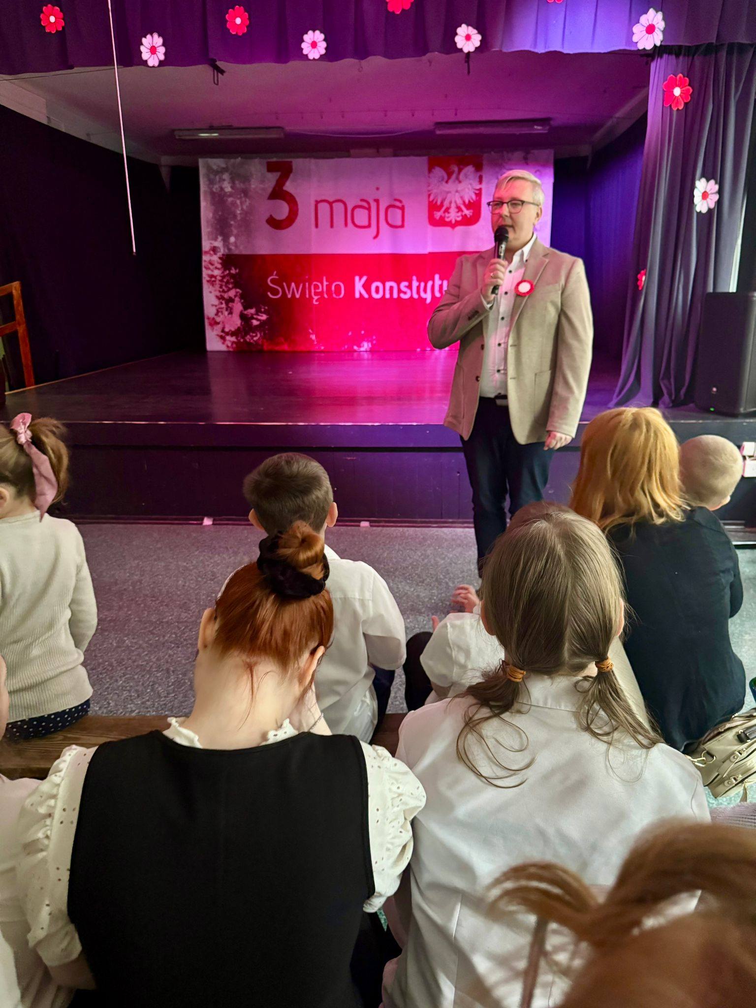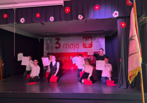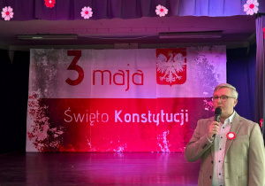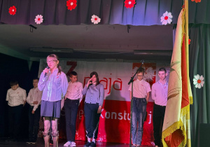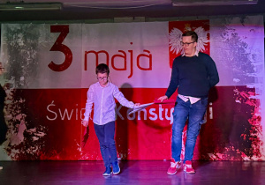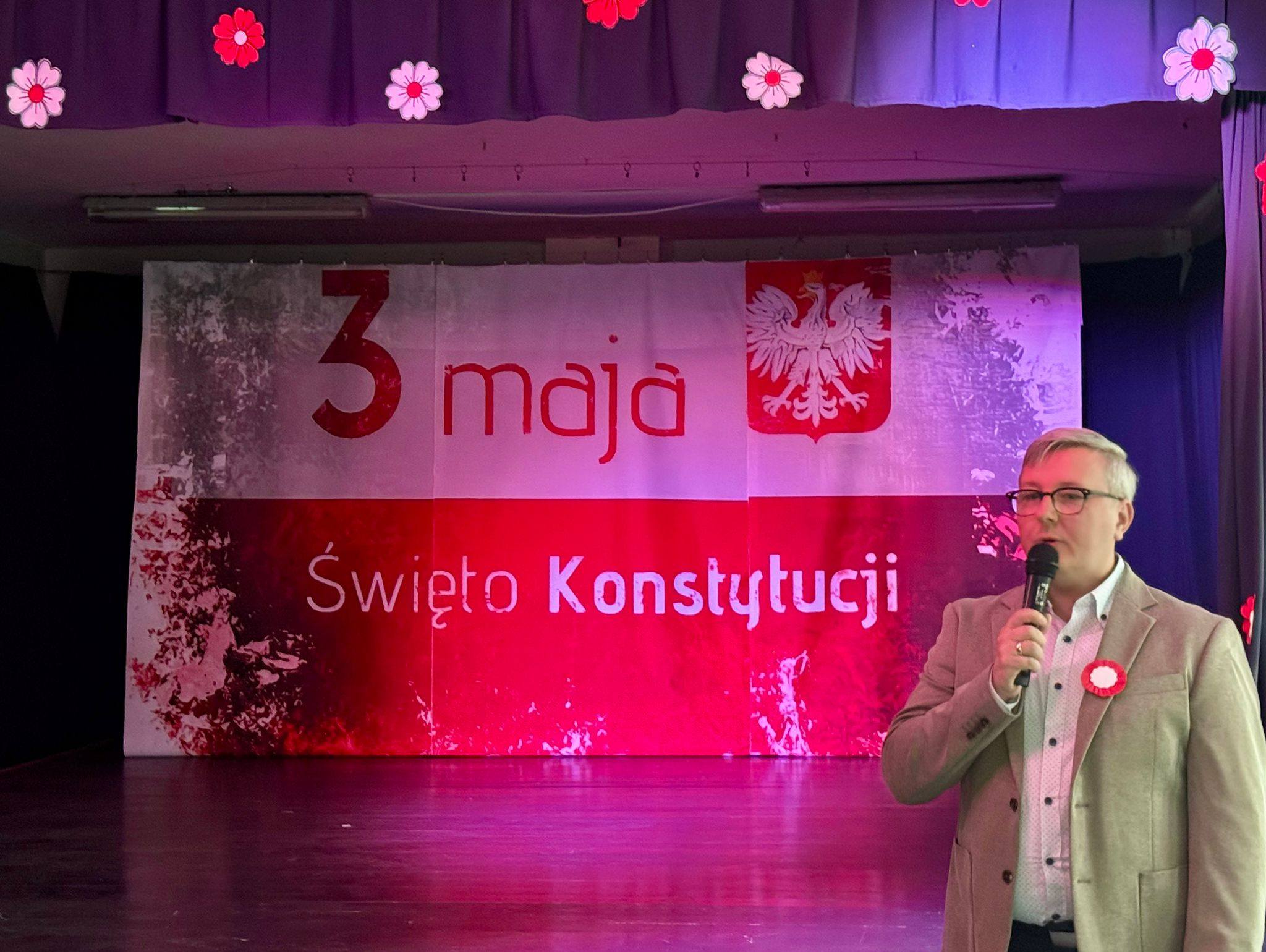 Po oficjalnej części (wprowadzenie sztandaru szkoły, odśpiewanie hymnu państwowego) nastąpiła część artystyczna – widowisko słowno - muzyczne. Publiczność obejrzała dwie prezentacje przypominające fakty historyczne związane z uchwaleniem Konstytucji 3 maja, wysłuchała recytacji wierszy oraz dwóch pieśni patriotycznych, podziwiała układ choreograficzny do melodii z filmu „Polskie drogi”. Nastrojowa muzyka oraz pięknie udekorowana scena współtworzyły podniosły, uroczysty nastrój występu.