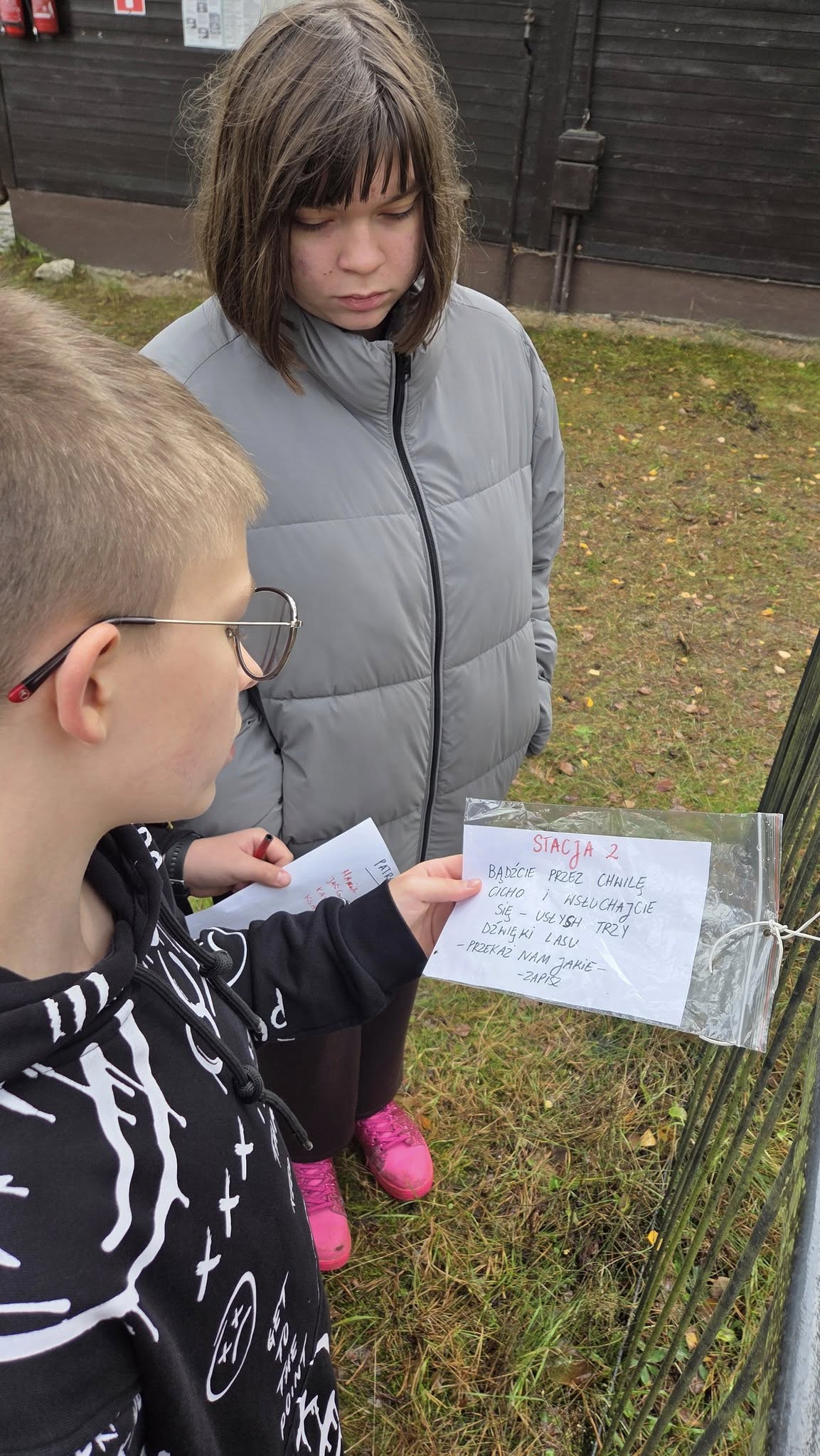 Drugiego dnia uczniów czekało nie lada wyzwanie: gra plenerowa, w trakcie której trzeba było wykazać się sprawnością fizyczną i logicznym myśleniem. Dzięki panu Robertowi Pietrasowi, który zna się na kompasie, ekipa nie zgubiła drogi. Za to świetnie wykonała zadania: szukanie trzech darów lasu, tworzenie figury geometrycznej z patyków i wiele innych. Potem nasi podopieczni ruszyli do lasu na grzyby.
