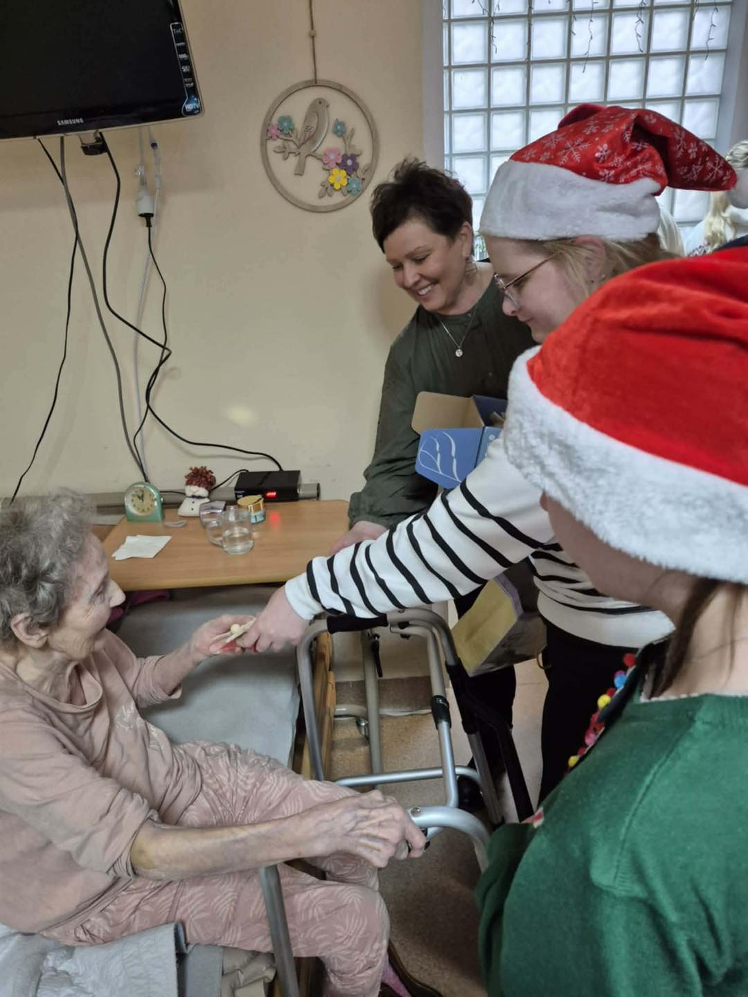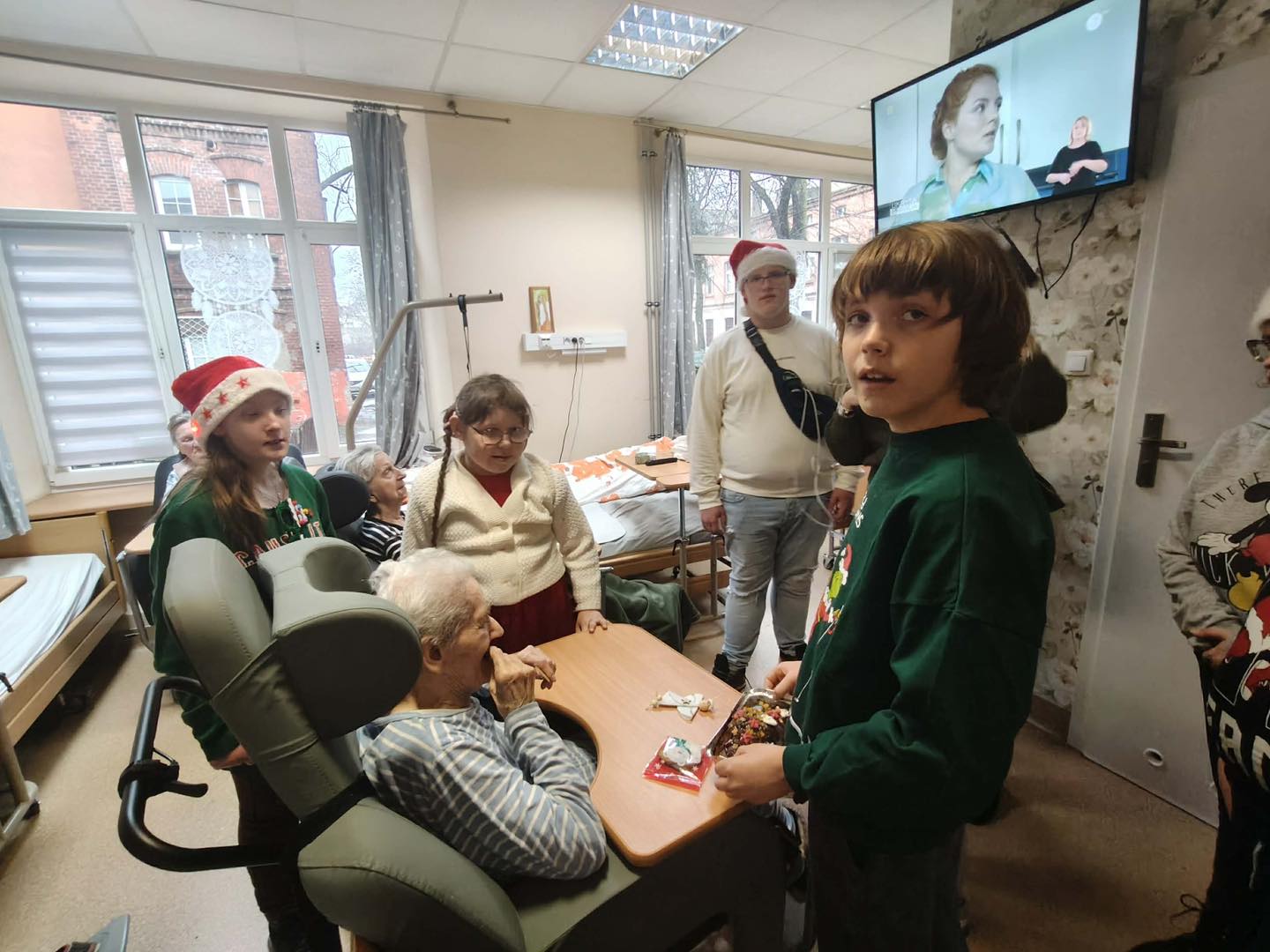 Wychowankowie Z4 i Z7a złożyli dziś świąteczne życzenia podopiecznym DPS-u „Spełnione marzenie”. Dzieci podarowały im własnoręcznie przygotowane ozdoby świąteczne oraz słodkie smakołyki, czym wywołały uśmiechy na twarzach i wzruszenie.