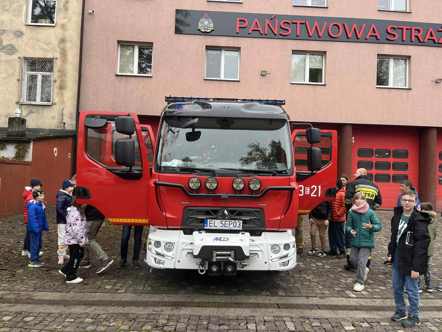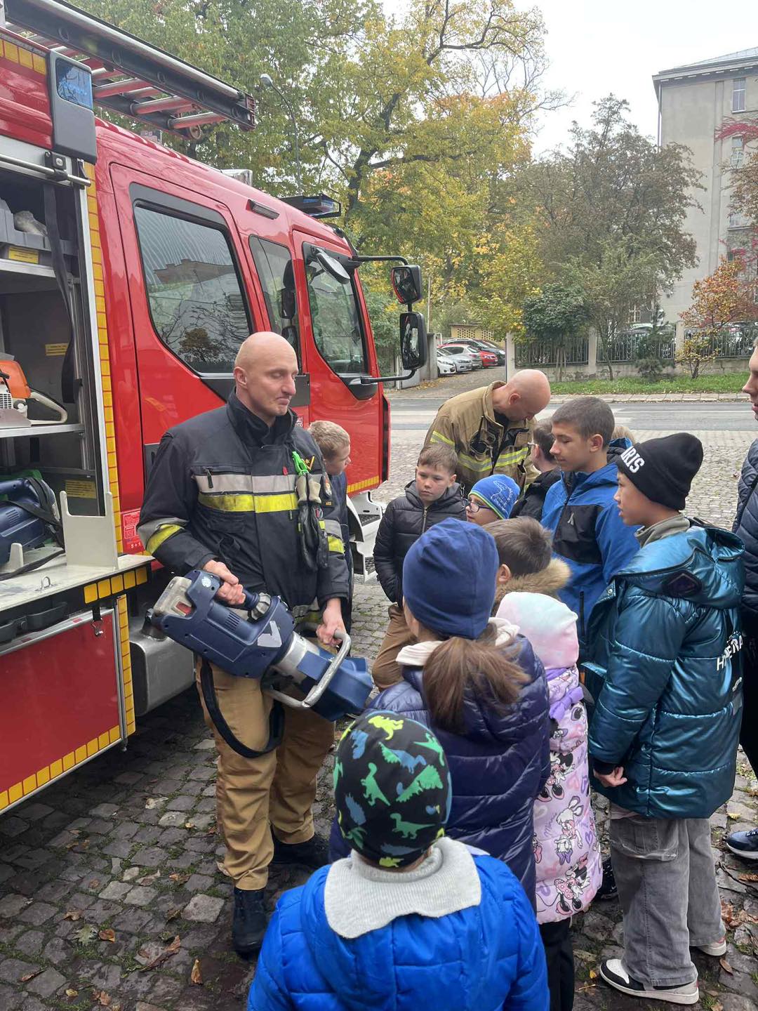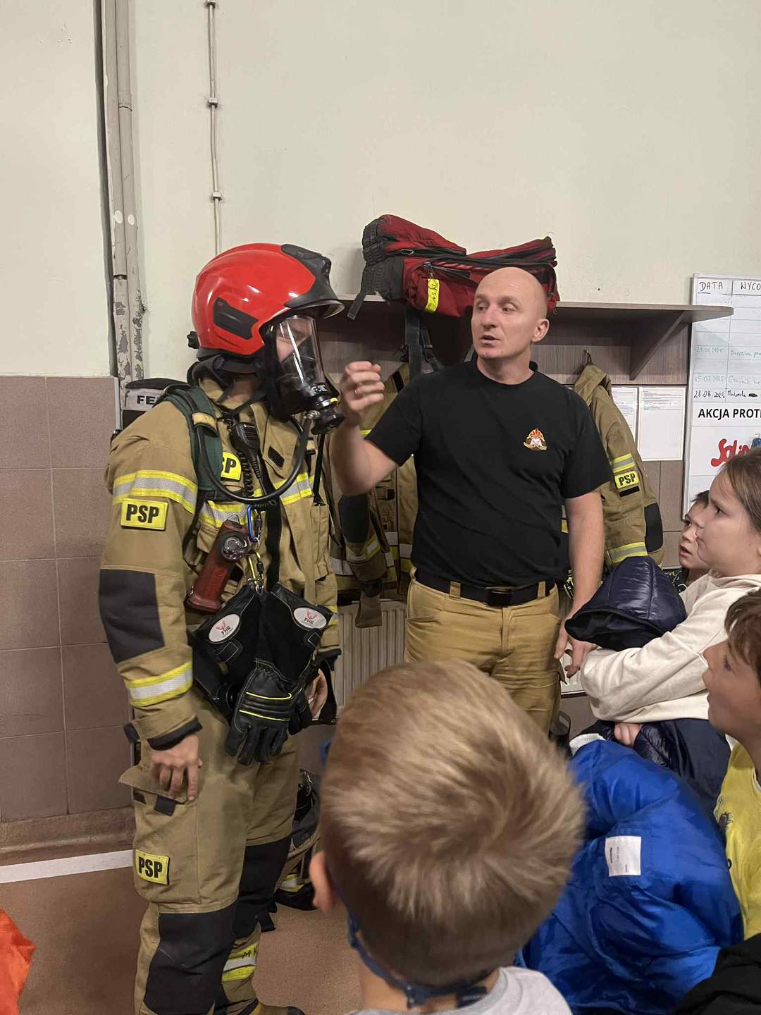 Pan aspirant opowiedział im o odpowiedzialnej i pełnej poświęcenia pracy strażaka, o wykorzystywanym sprzęcie oraz akcjach ratowniczych. Uczniowie zwiedzili budynek straży, w tym: saunę, jadalnię czy pokój audiowizualny. Wszystkie pomieszczenia były bardzo interesujące, jednak największe wrażenie wywarł na nich garaż z wozami strażackimi. Wiele emocji wzbudził moment, gdy mogli sami polać wodę z prawdziwego strażackiego węża!