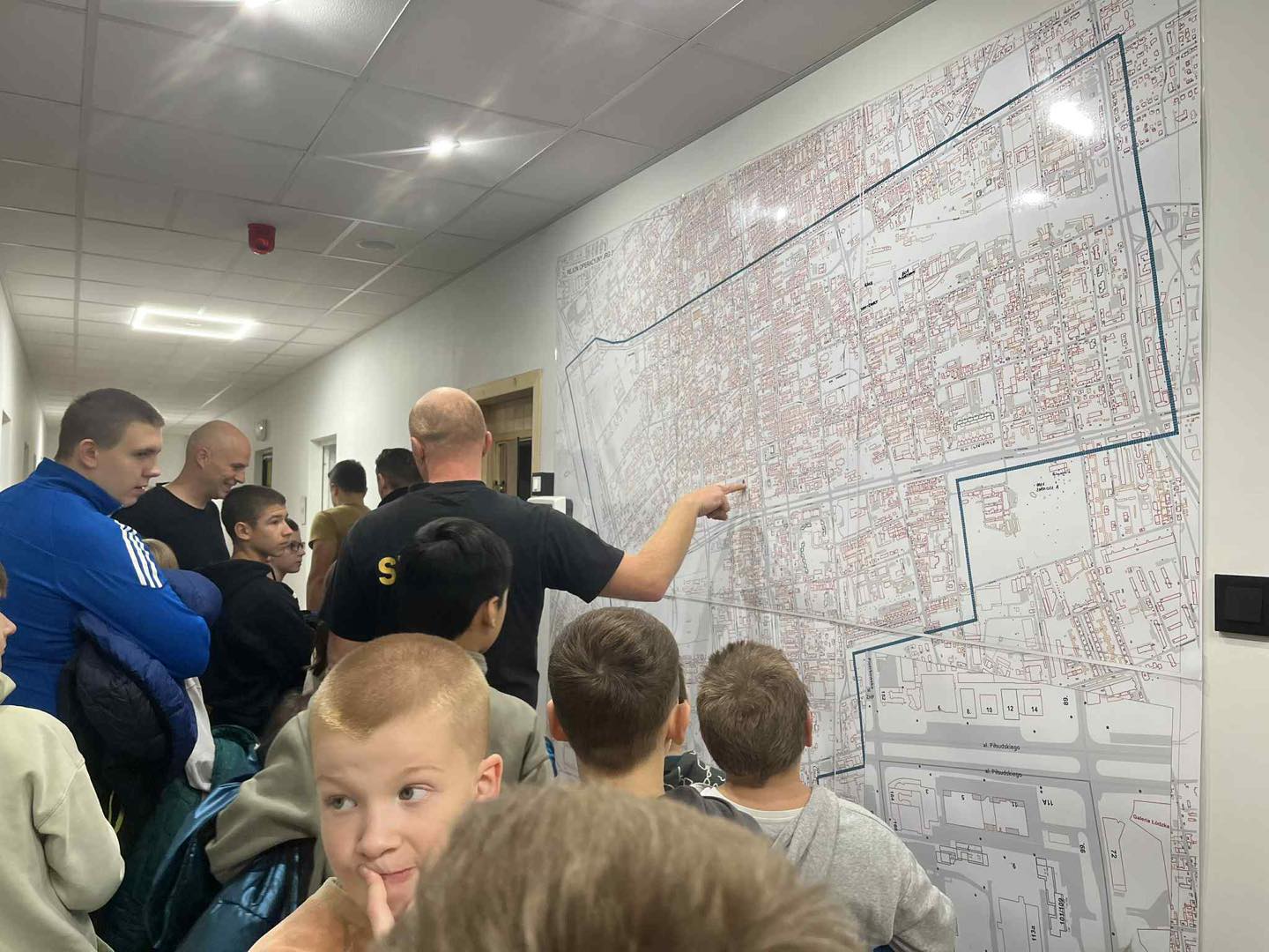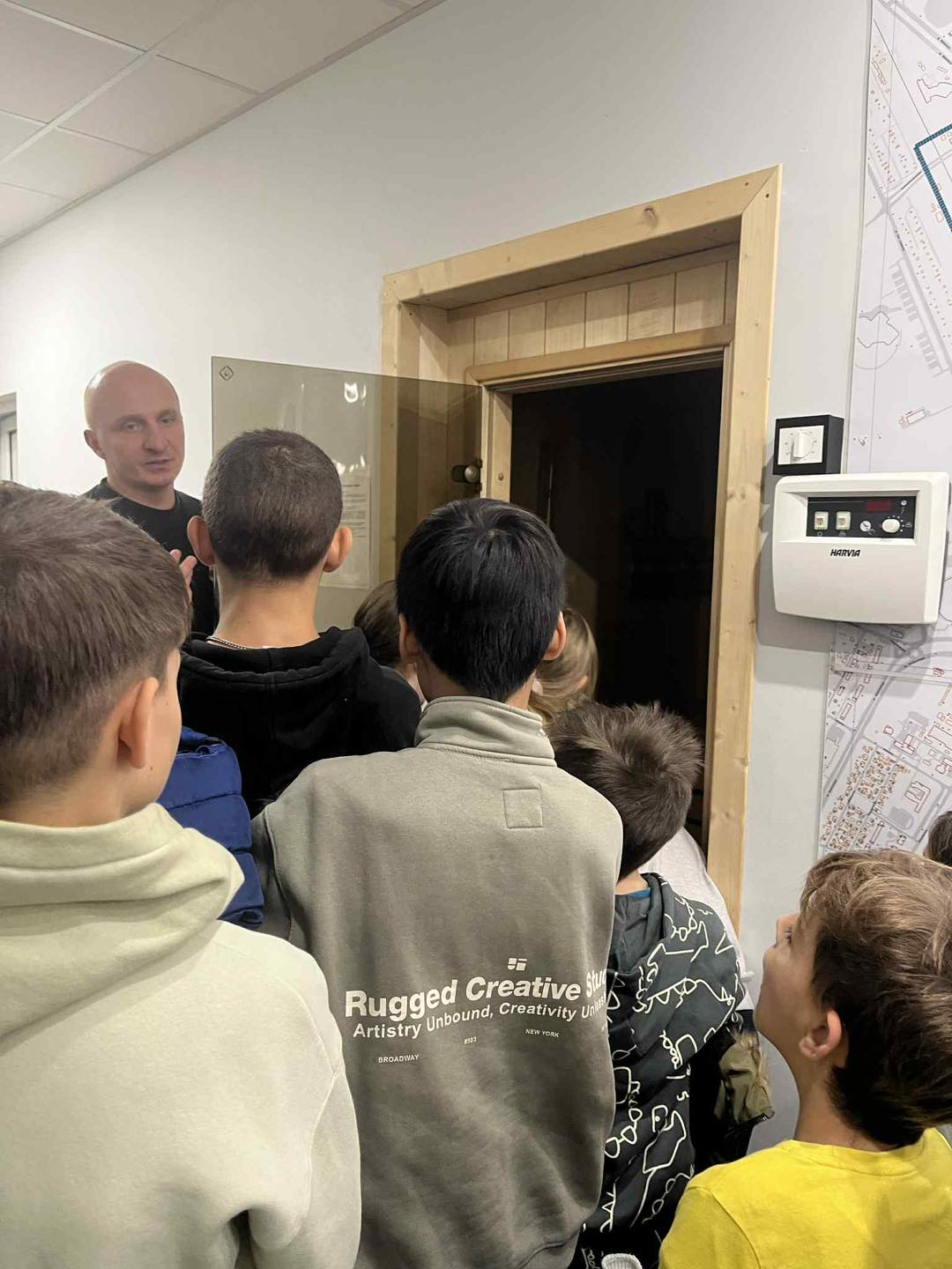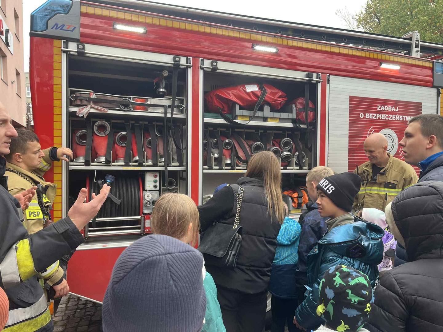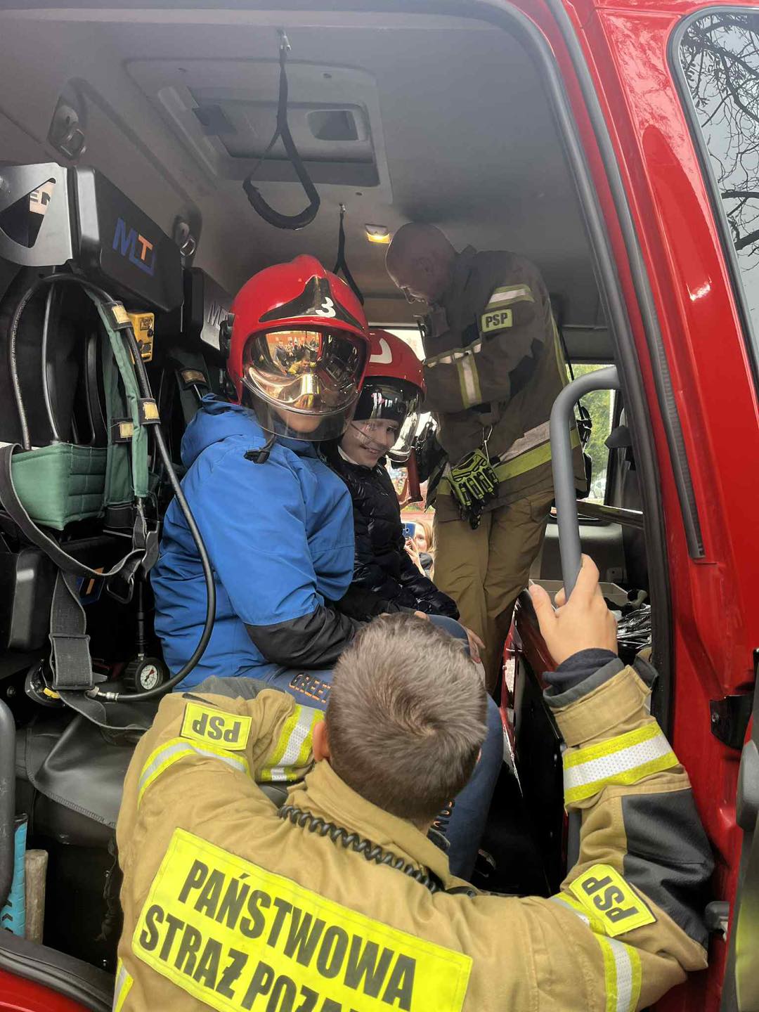 Pan aspirant opowiedział im o odpowiedzialnej i pełnej poświęcenia pracy strażaka, o wykorzystywanym sprzęcie oraz akcjach ratowniczych. Uczniowie zwiedzili budynek straży, w tym: saunę, jadalnię czy pokój audiowizualny. Wszystkie pomieszczenia były bardzo interesujące, jednak największe wrażenie wywarł na nich garaż z wozami strażackimi. Wiele emocji wzbudził moment, gdy mogli sami polać wodę z prawdziwego strażackiego węża!