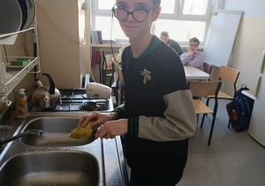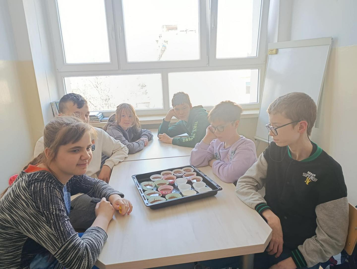 Uczniowie Z3c i Z5b wzięli udział w warsztatach, podczas których piekli wielkanocne babeczki, a zapach tych słodkości roznosił się po całym budynku. Wszystkim tylko ślinka leciała… Uczestnicy zajęć, rozwijając swoje cukiernicze zdolności, doskonale się bawili. I zapewne po skończonej pracy najedli się do syta.